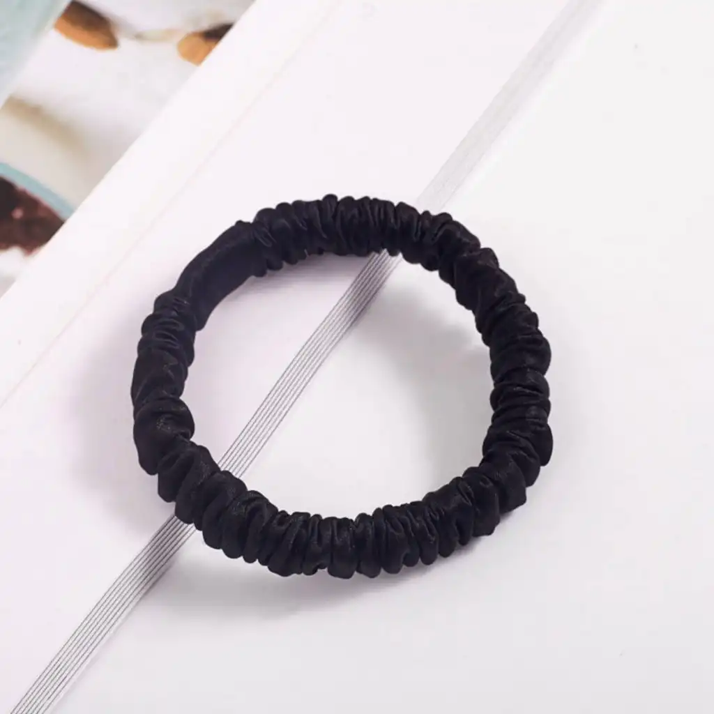 %100 Saf İpek Küçük Scrunchie Saç Tokası Siyah - Günlük Pratik Ekstra Elastik Lastikli Simit Toka