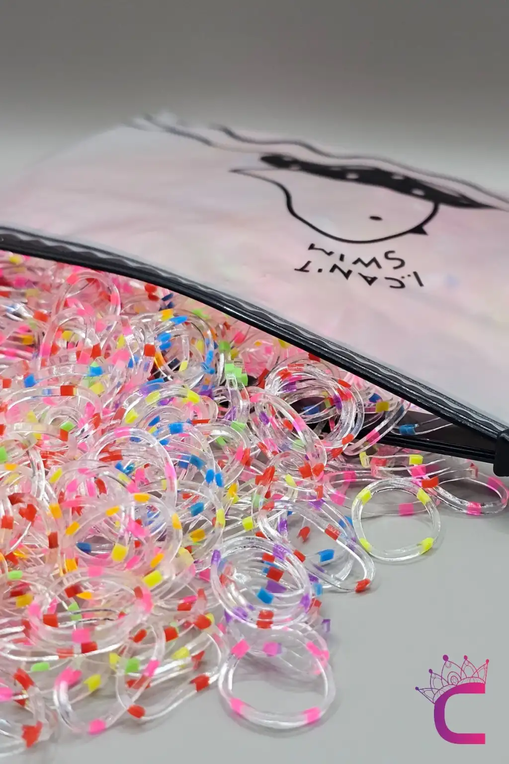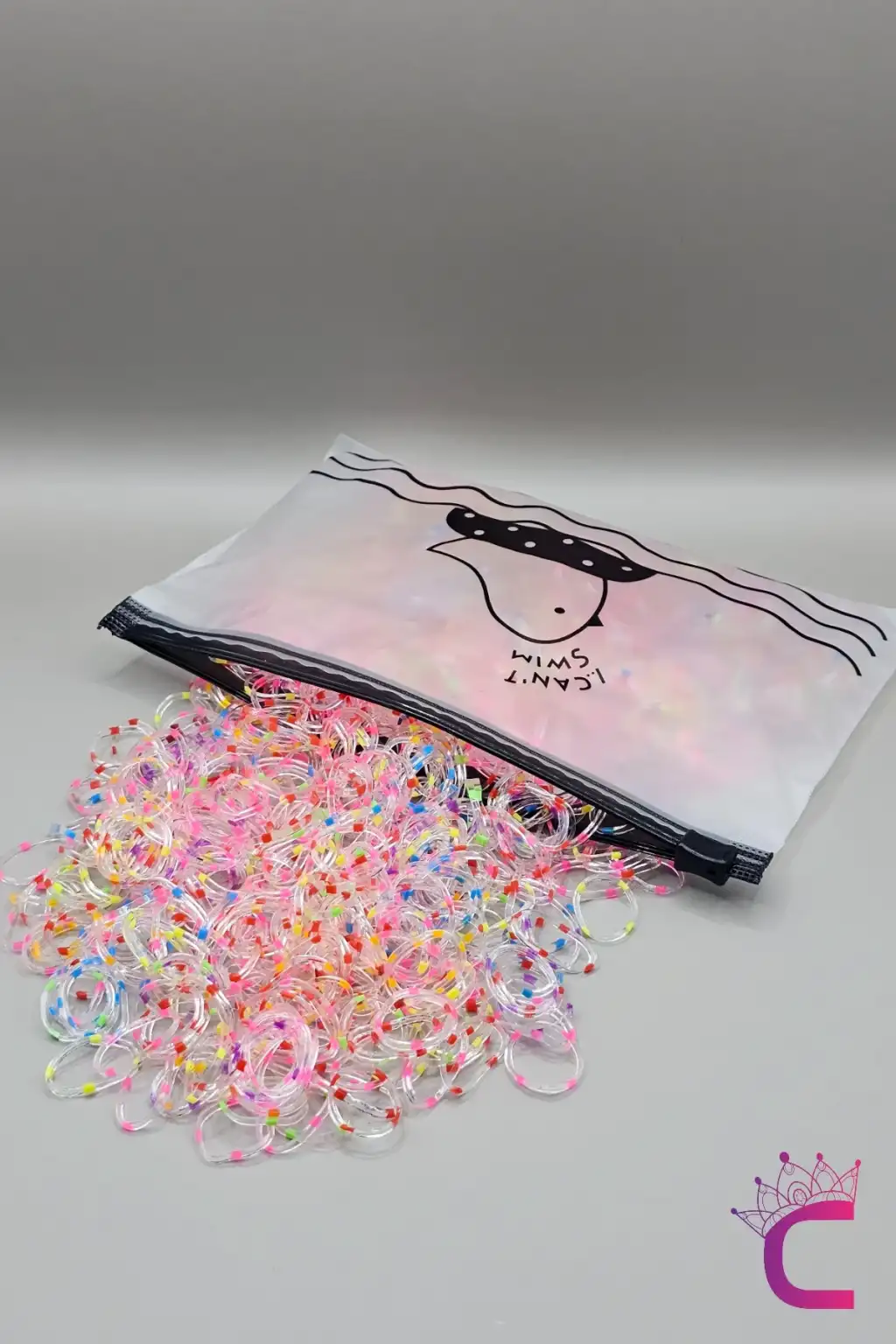 1000'li Çantalı Dayanıklı Perma Lastik Toka Seti - Şeffaf Floresan Renkli Saç Lastiği Örgü Tokası