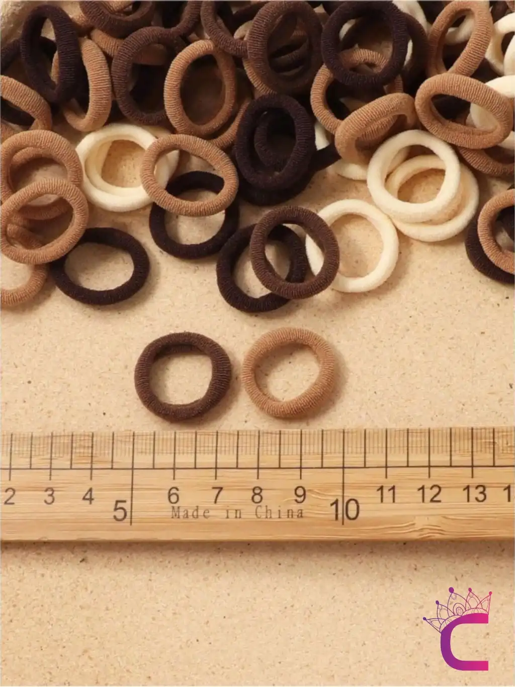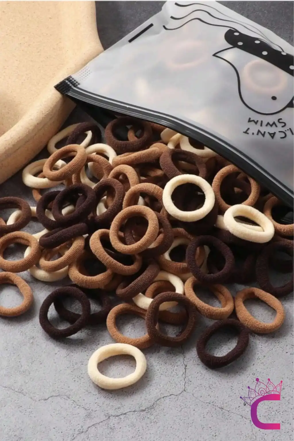 100'lü Günlük Kahve Tonlu Çantalı Küçük Lastik Toka Seti - Kız Çocuk Yumuşak Lastikli Saç Tokası