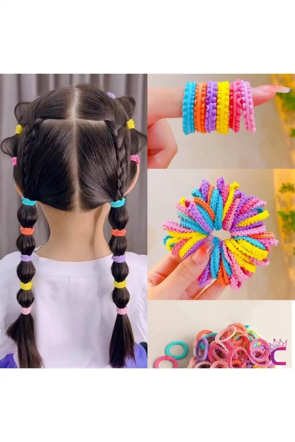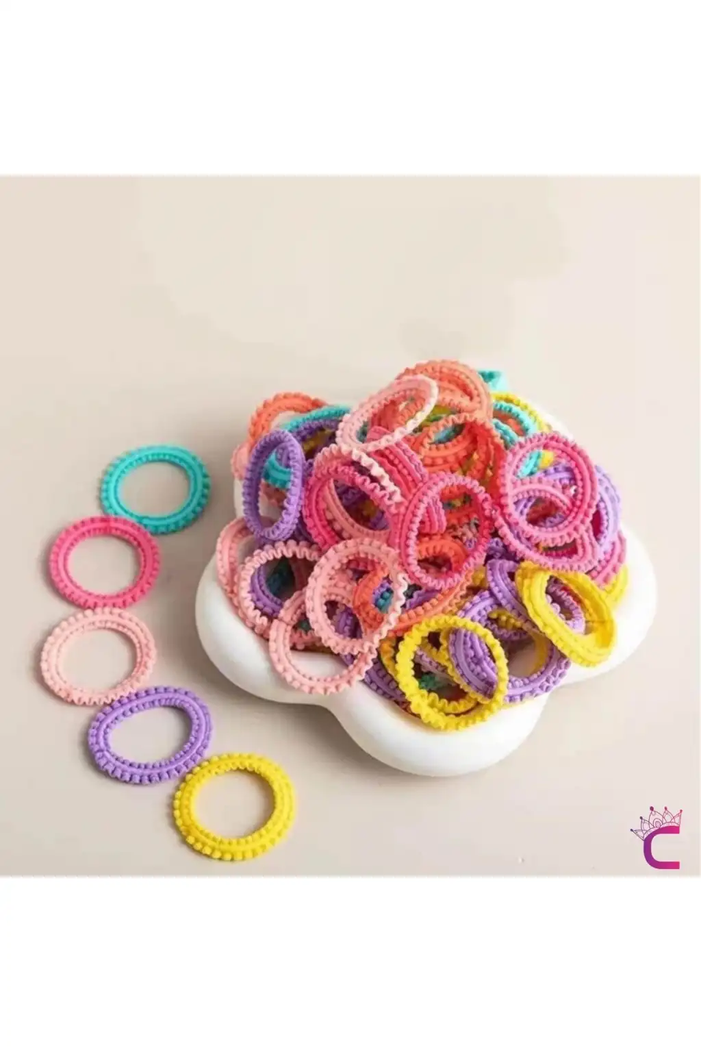 100'lü Küçük Yumuşak Lastikli At Kuyruğu Bağlama Toka Seti - Renkli Bebek Çocuk Lastik Saç Tokası