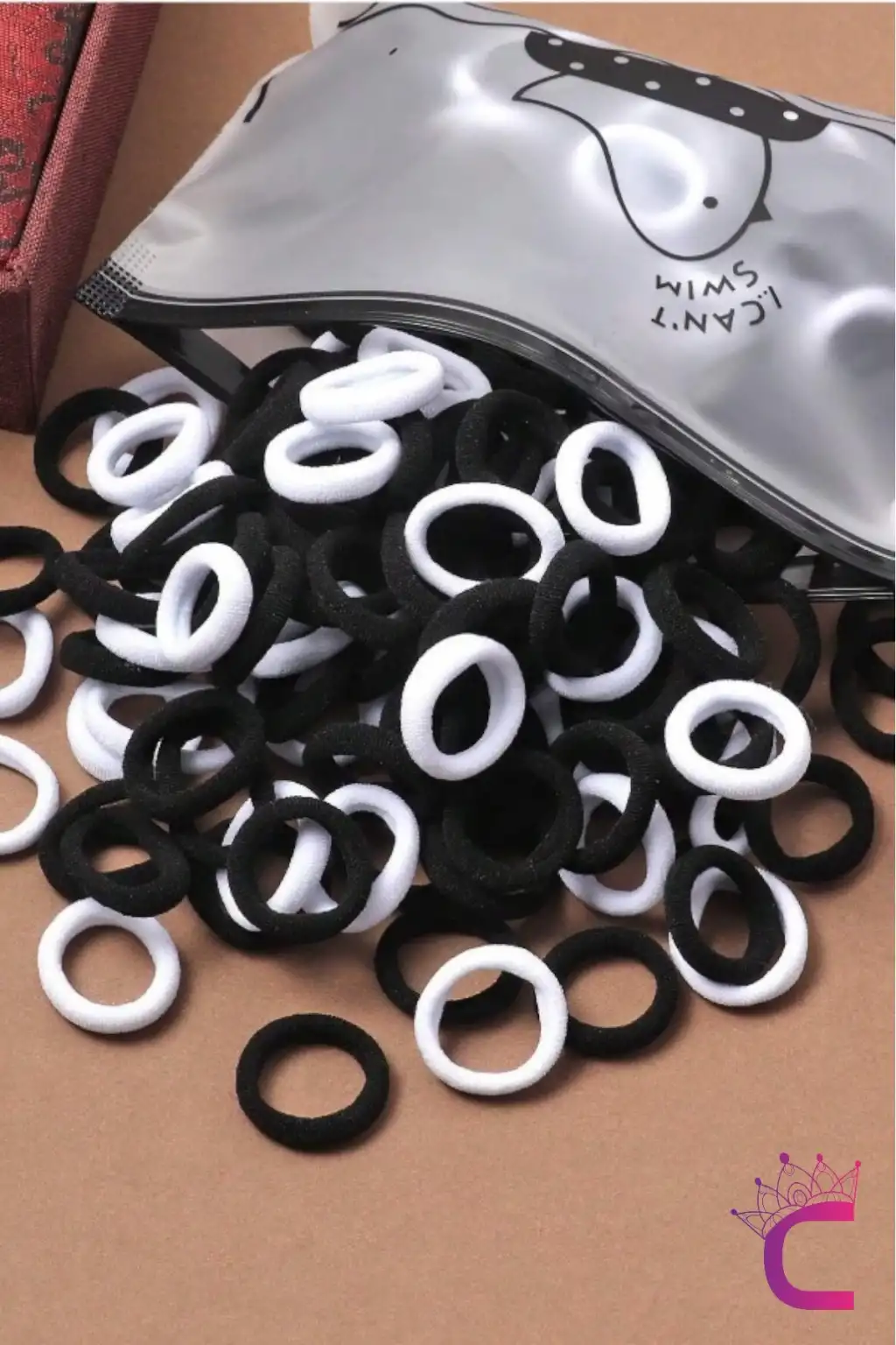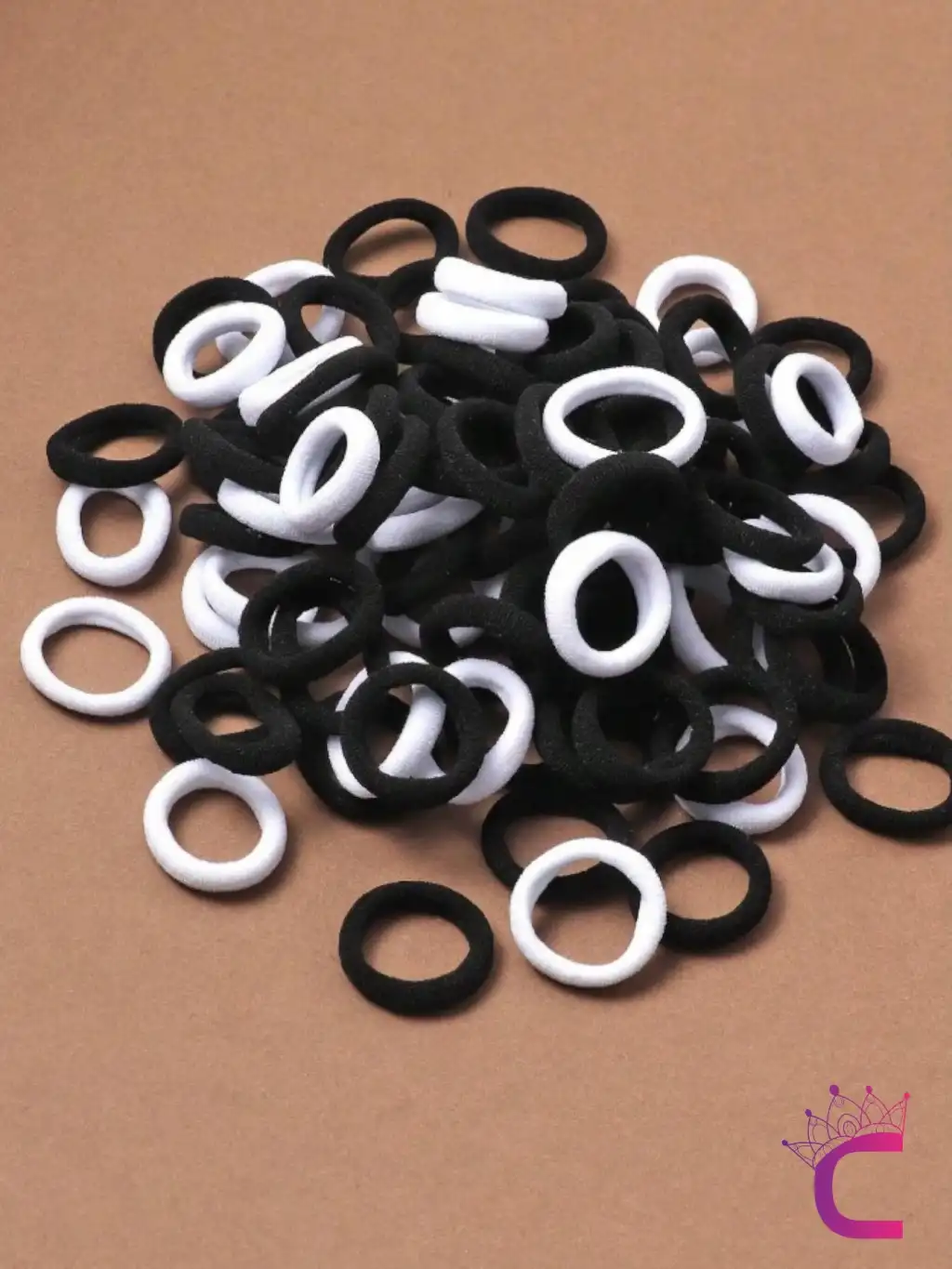 100'lü Siyah Beyaz Çantalı Minik Elastik Lastik Toka Seti - Kadın Çocuk Yumuşak Saç Tokası Model-4