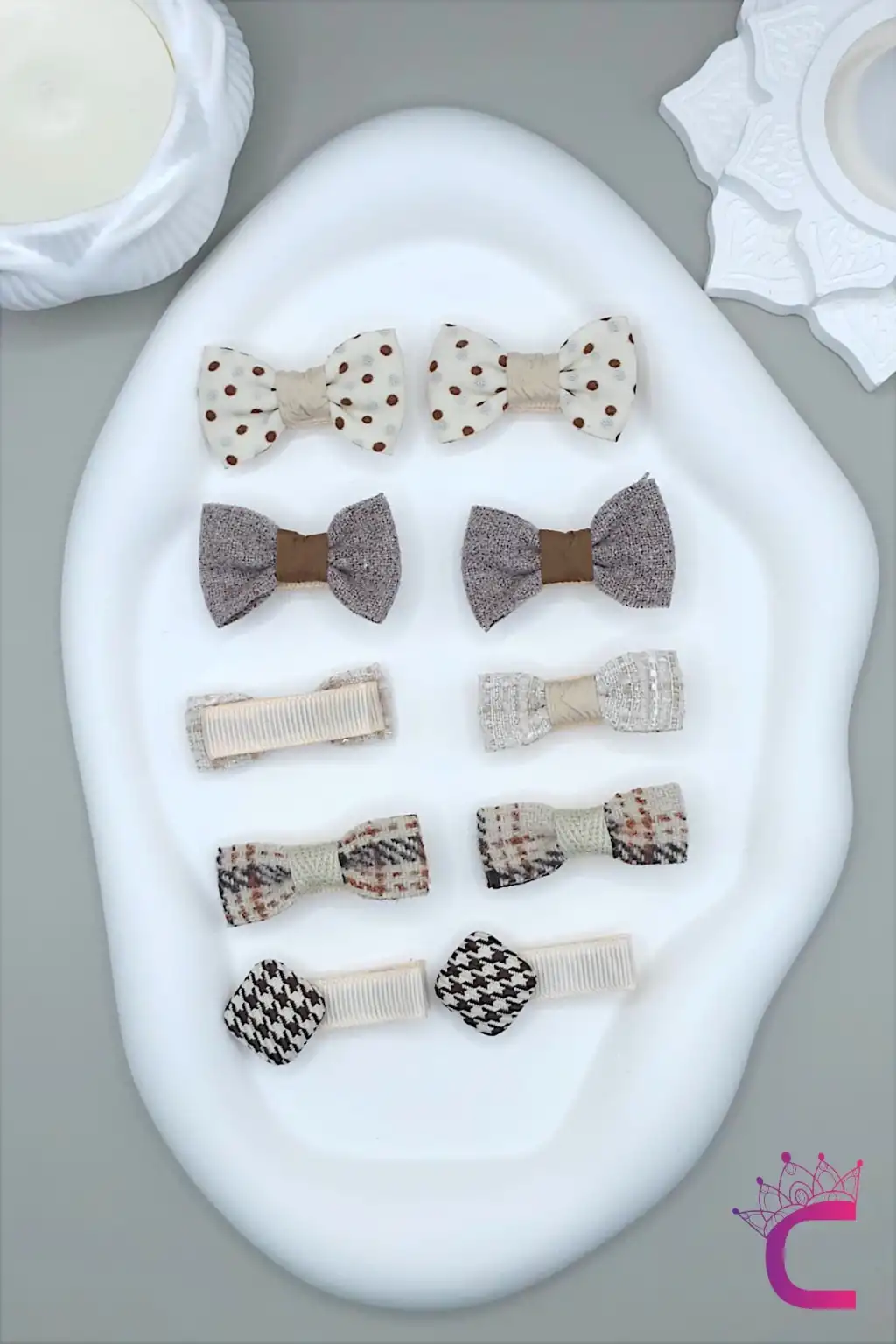 10'lu Çanta Kutulu Hediyelik Kız Bebek Kurdele Fiyonk Toka Seti Soft - Acıtmaz Çocuk Pens Saç Tokası