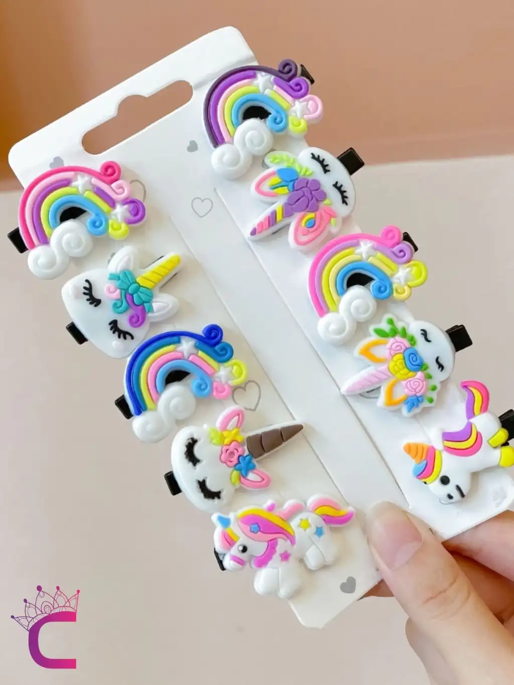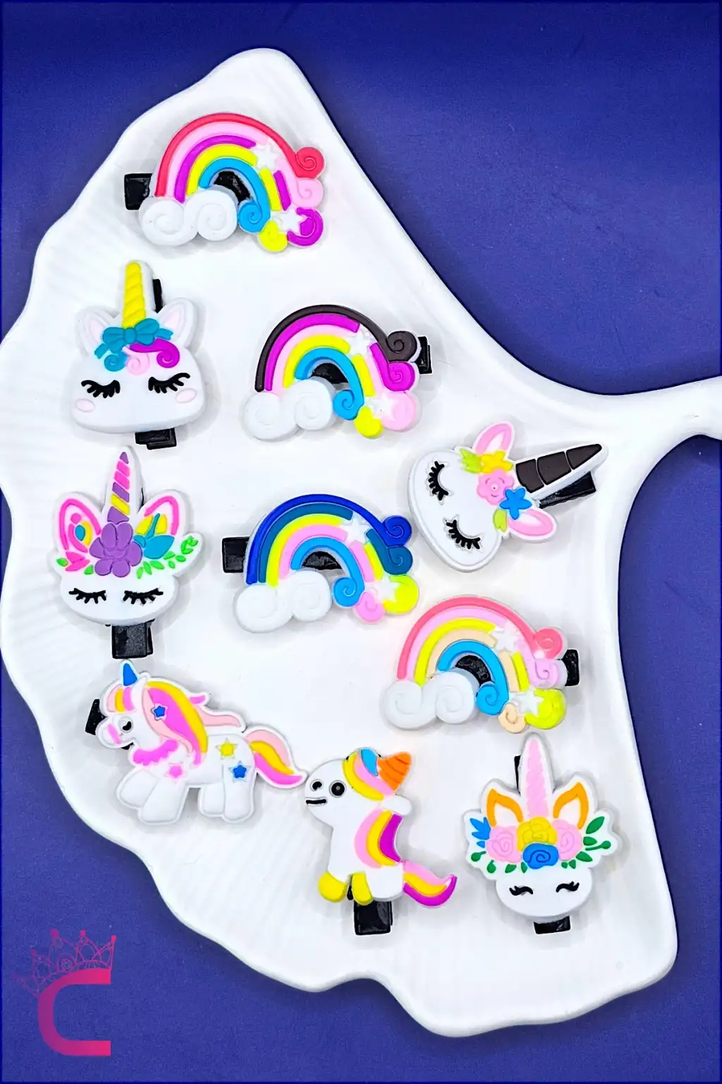 - Bebek ve çocukların sevimli dünyasına renk katan 10'lu çiçek unicorn gökkuşağı detaylı kız çocuk pens toka seti.