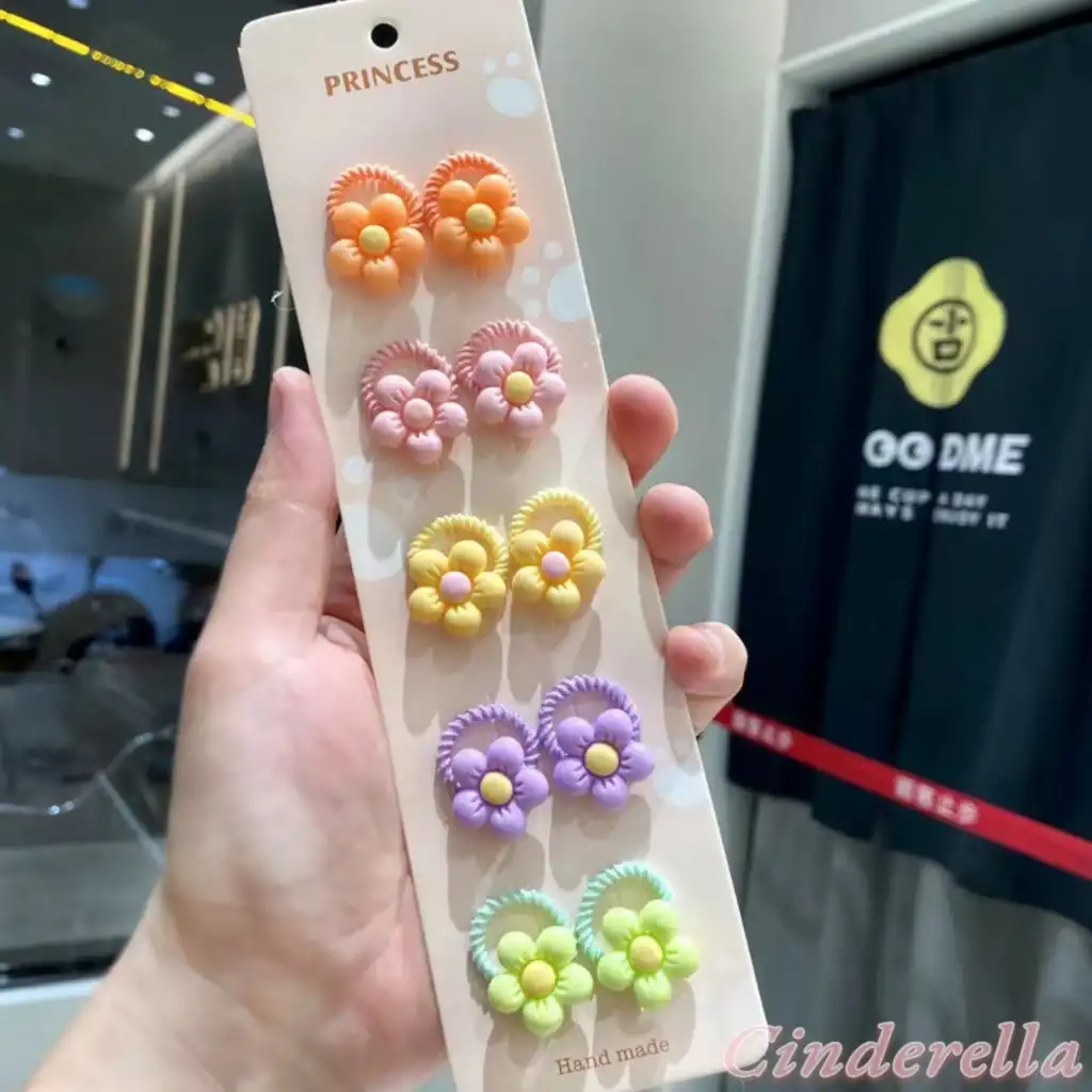 10'lu Plumeria Çiçekli Dayanıklı Renkli Kız Çocuk Lastik Toka - Gür Saç Esnek Lastikli Saç Tokası