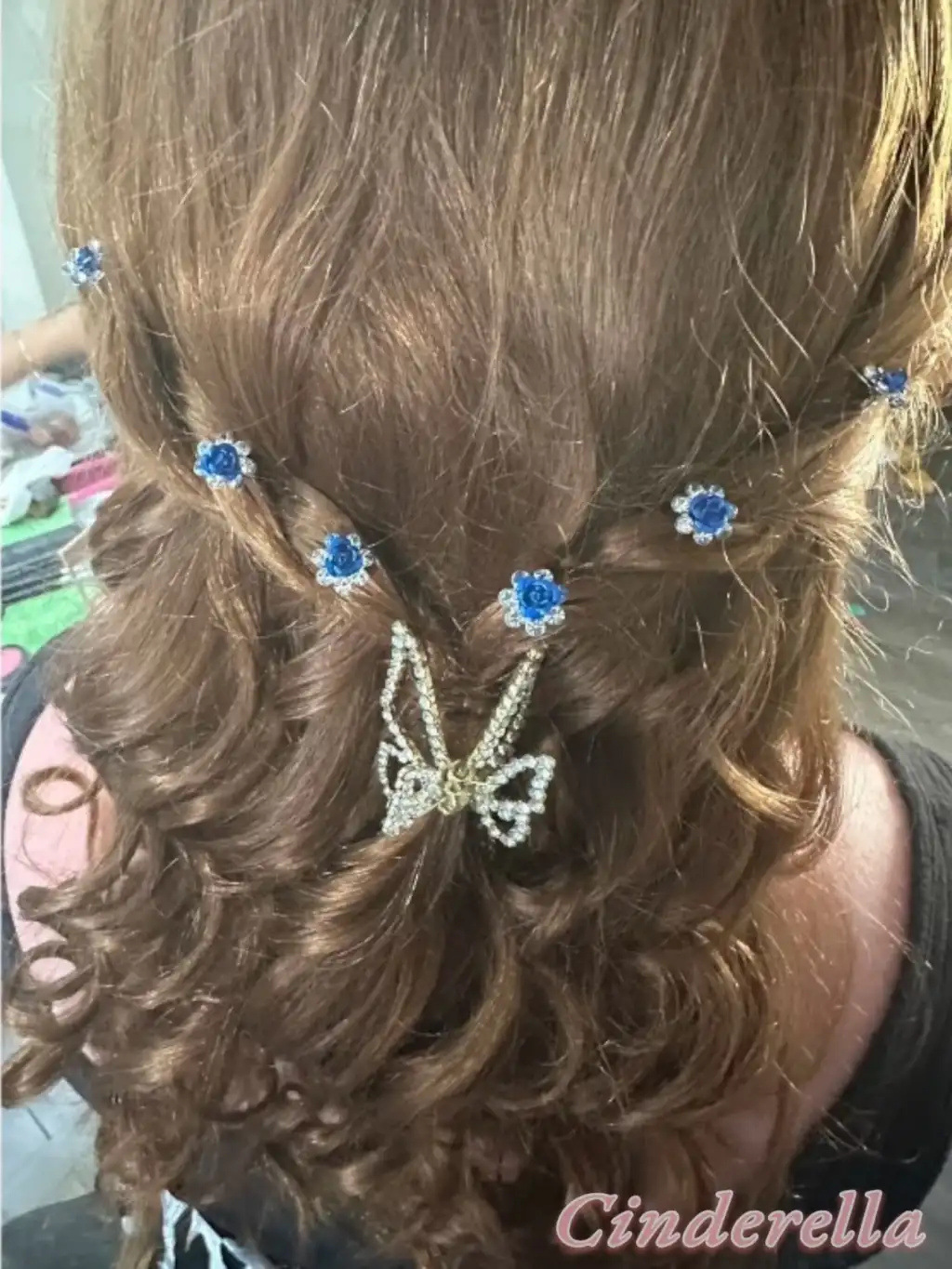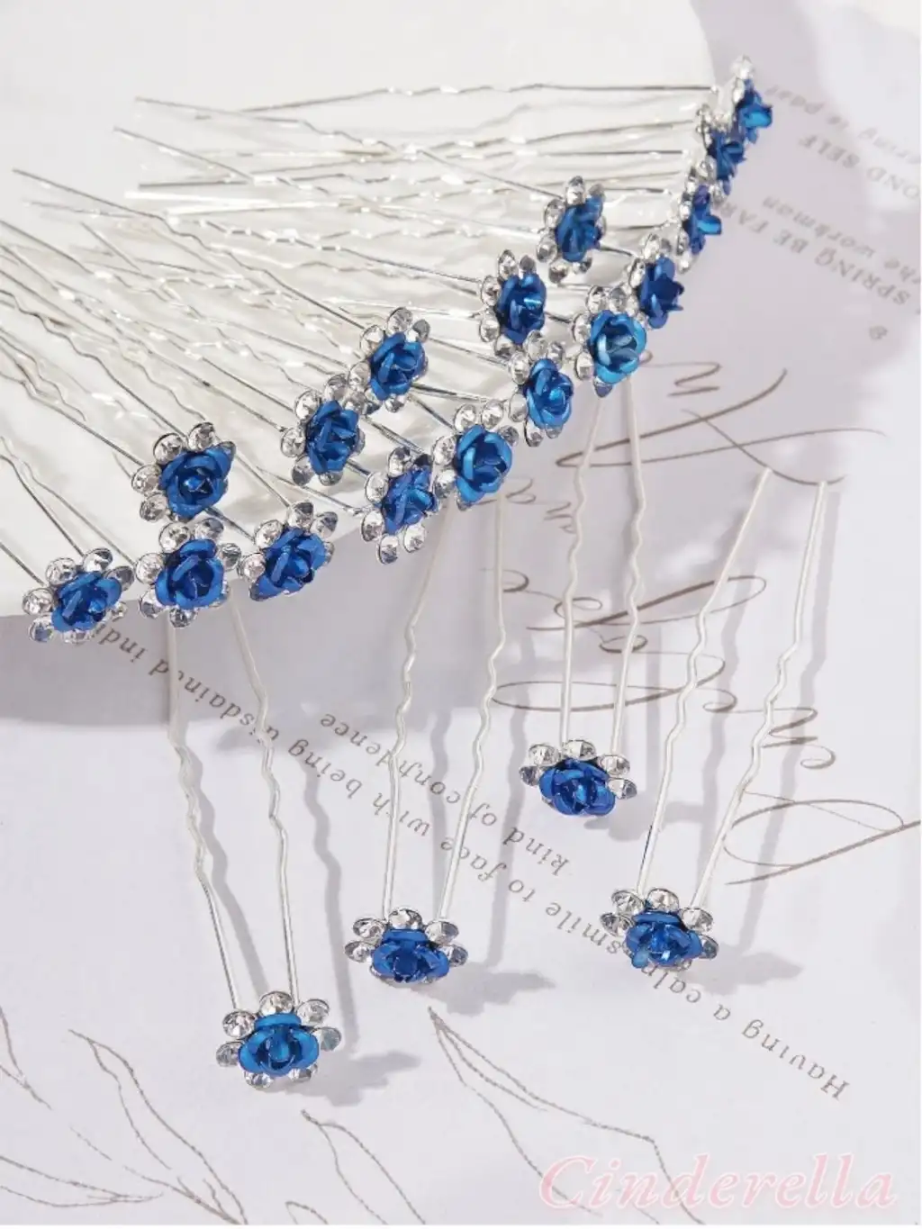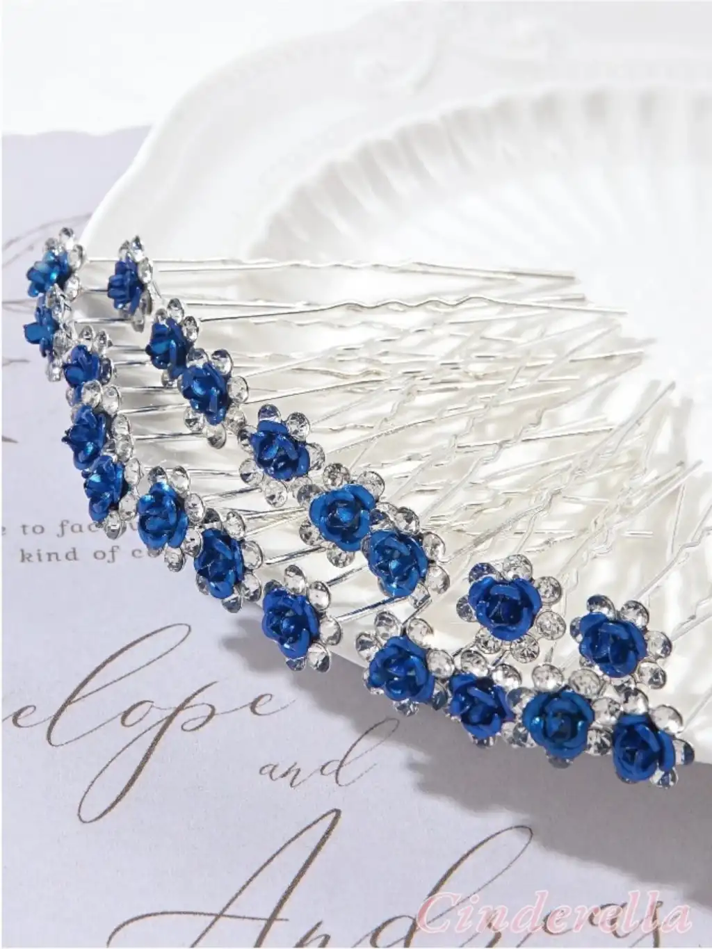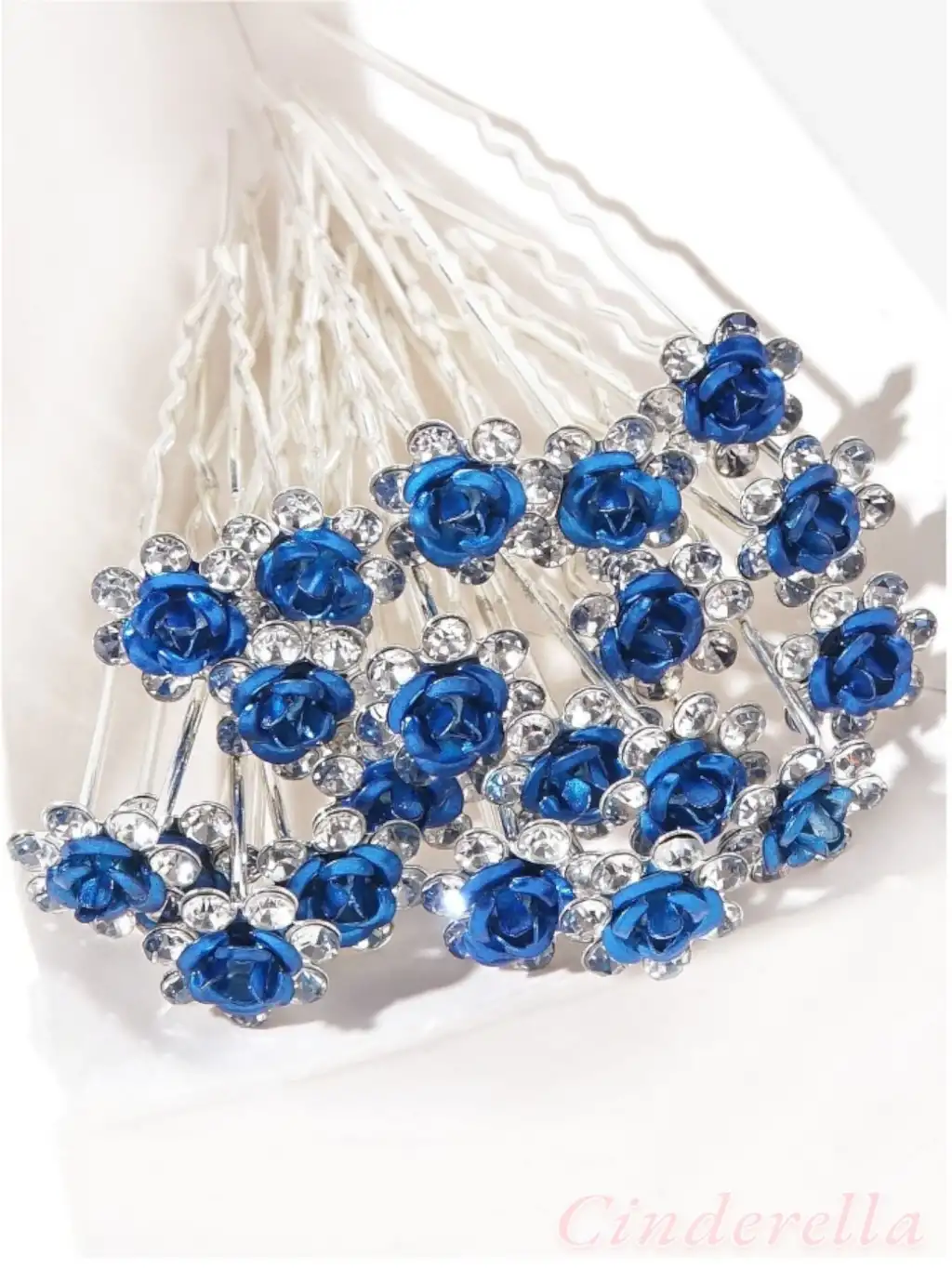 10'lu Mini Kristal Taşlı Çiçek Tasarım Firkete Toka Royal Mavi - Nikah Saç Aksesuarı Topuz Tokası