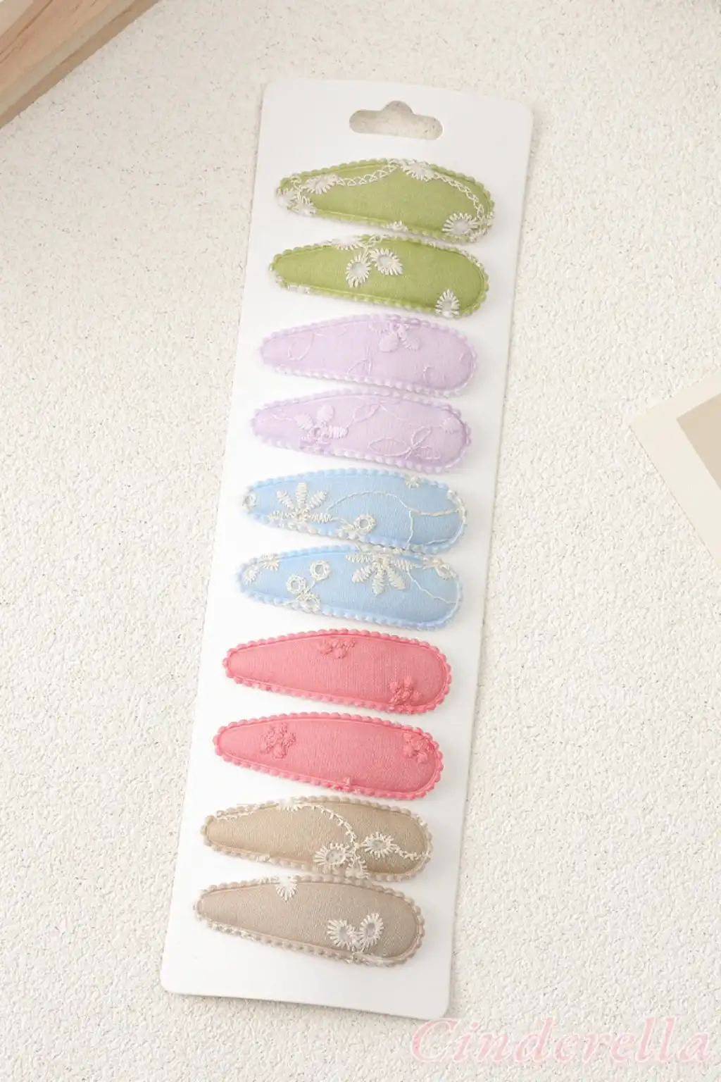 10'lu Özel Seri Nakışlı Çiçekli Model Çocuk Çıt Çıt Toka Seti - Kız Bebek Çıtçıt Saç Toka Model-10