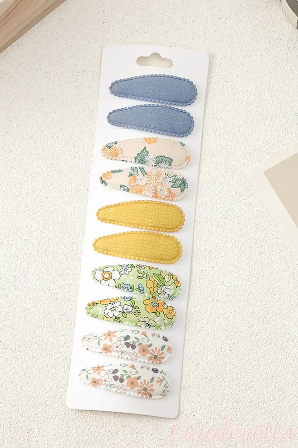 10'lu Özel Seri Nakışlı Çiçekli Model Çocuk Çıt Çıt Toka Seti - Kız Bebek Çıtçıt Saç Toka Model-8