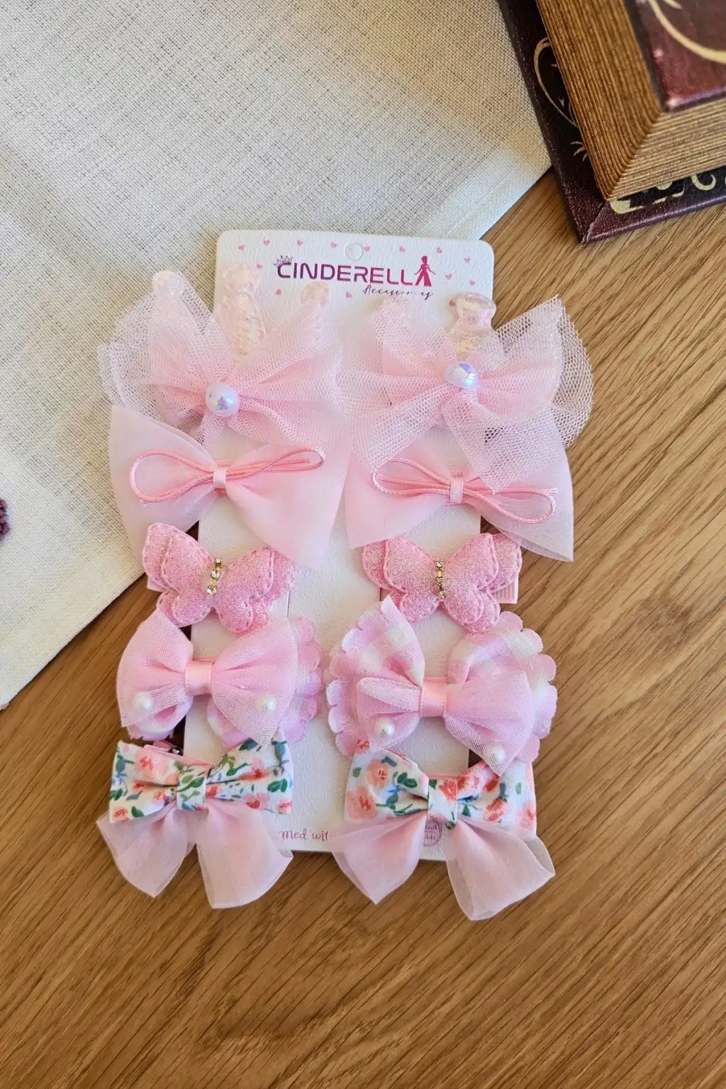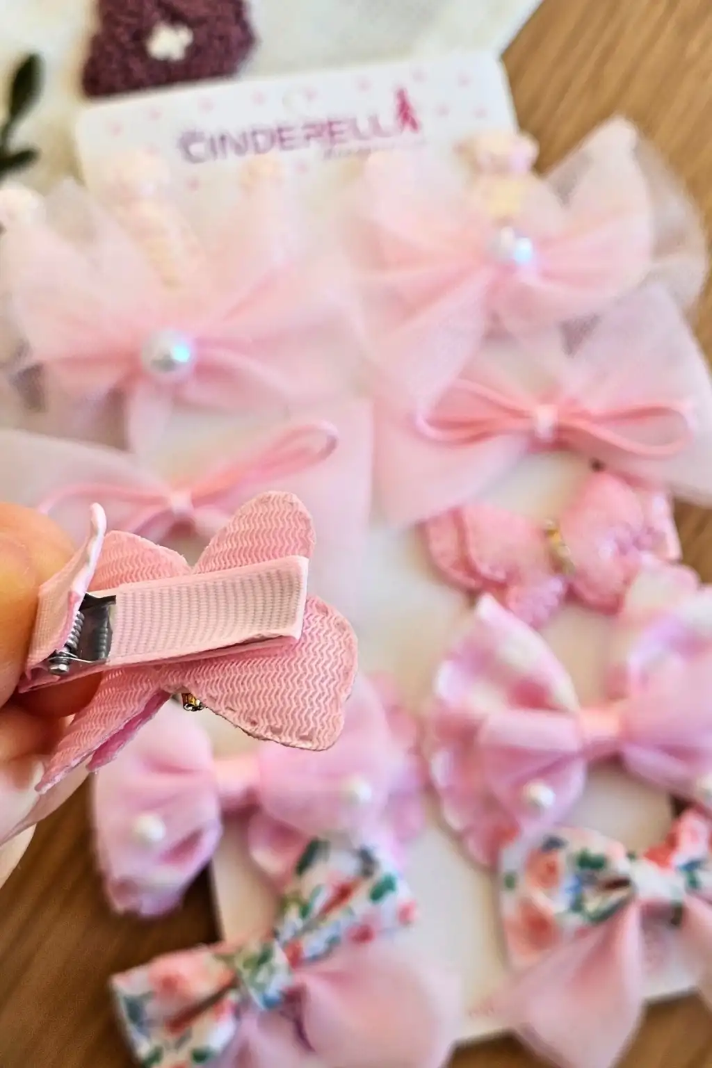 10'lu Pembe Kız Bebek Pens Toka Seti Kelebekli Fiyonk Kurdele İnci Tüllü Klips Çocuk Saç Tokası