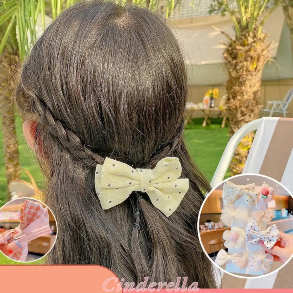 2'li İncili Sallantılı Krem Fiyonk Pens Toka Seti - Zarif Kız Çocuk Kurdeleli Klipsli Saç Tokası