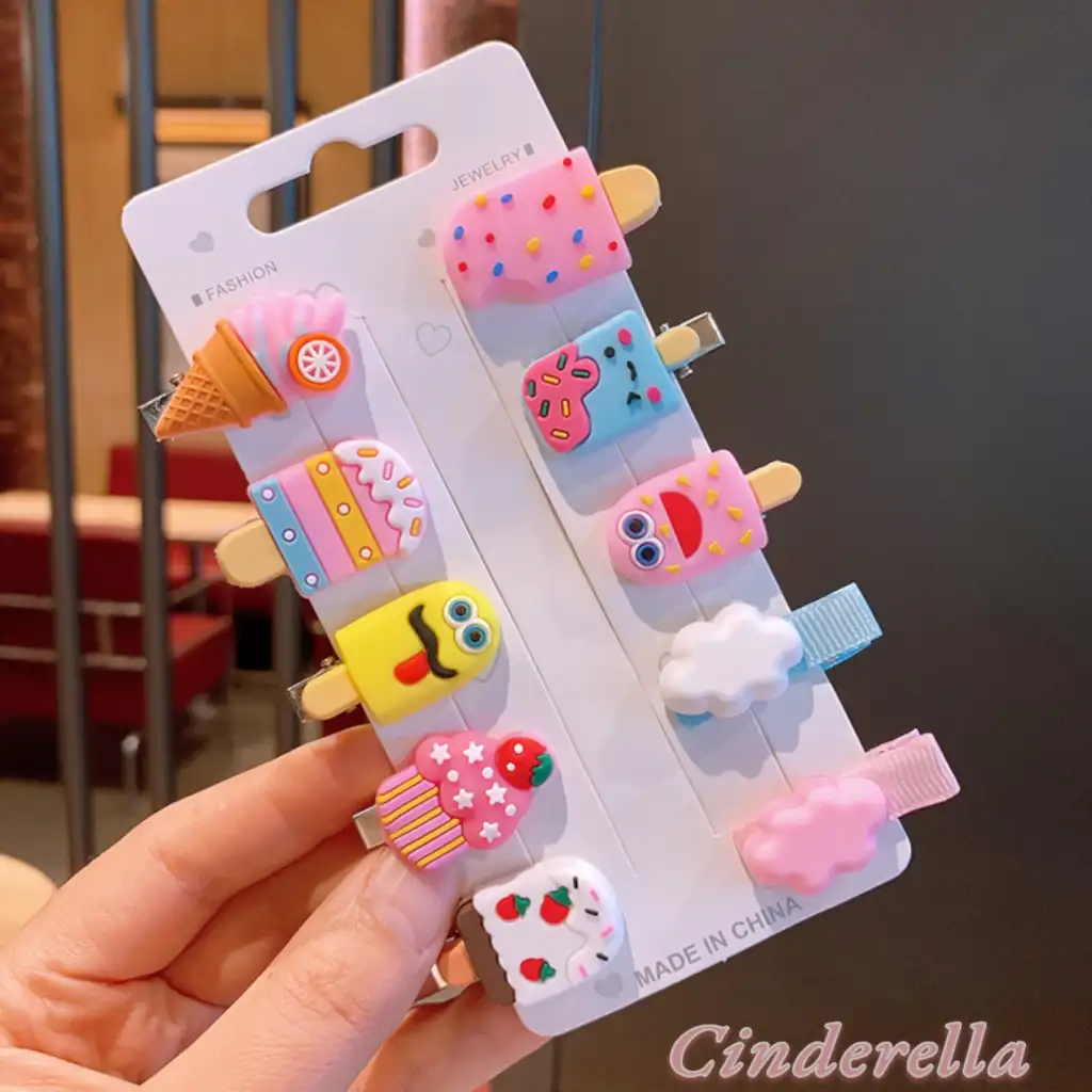 10'lu Sevimli Dondurma Figürlü Pens Toka Seti - Kız Çocuk Klips Saç Tokası