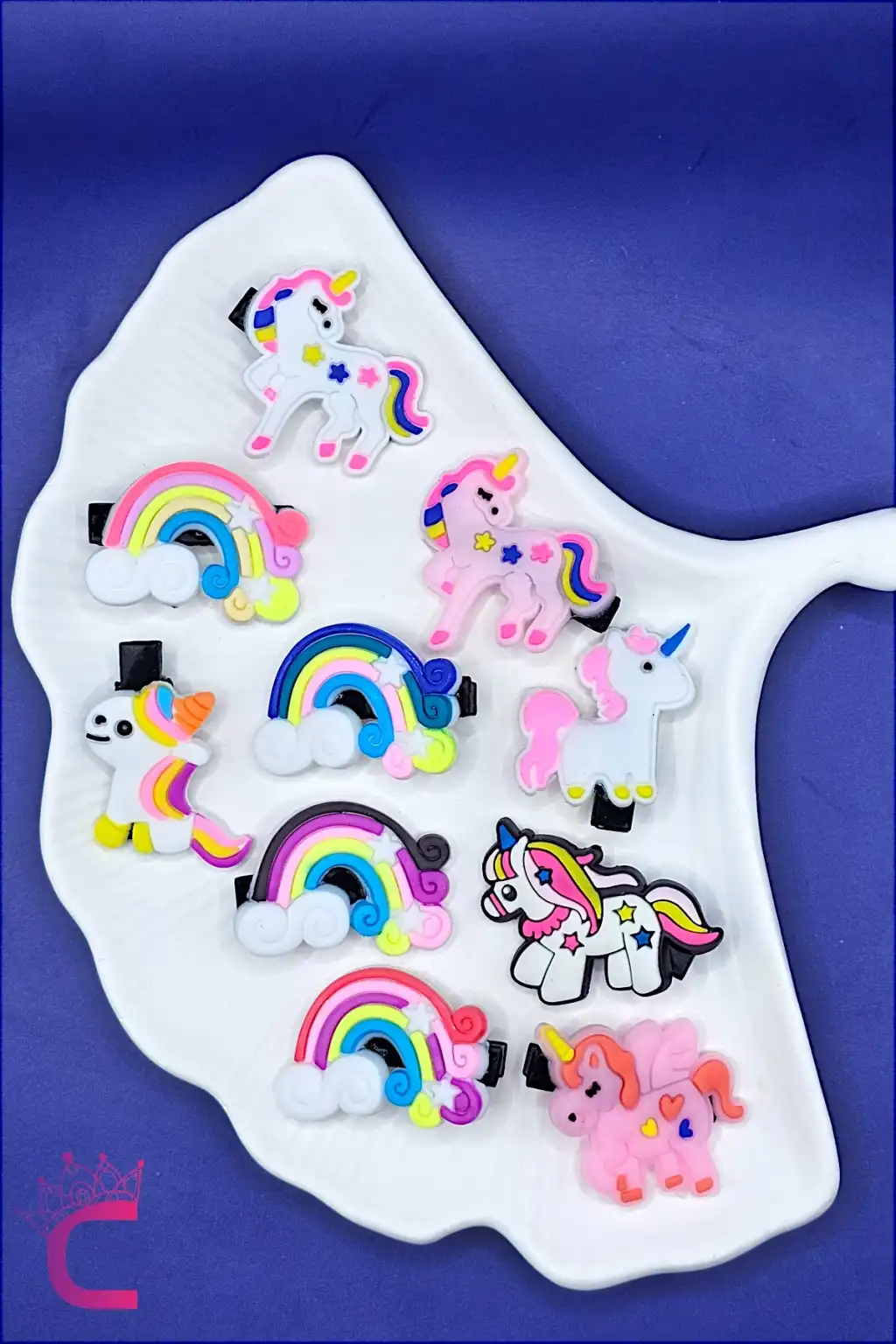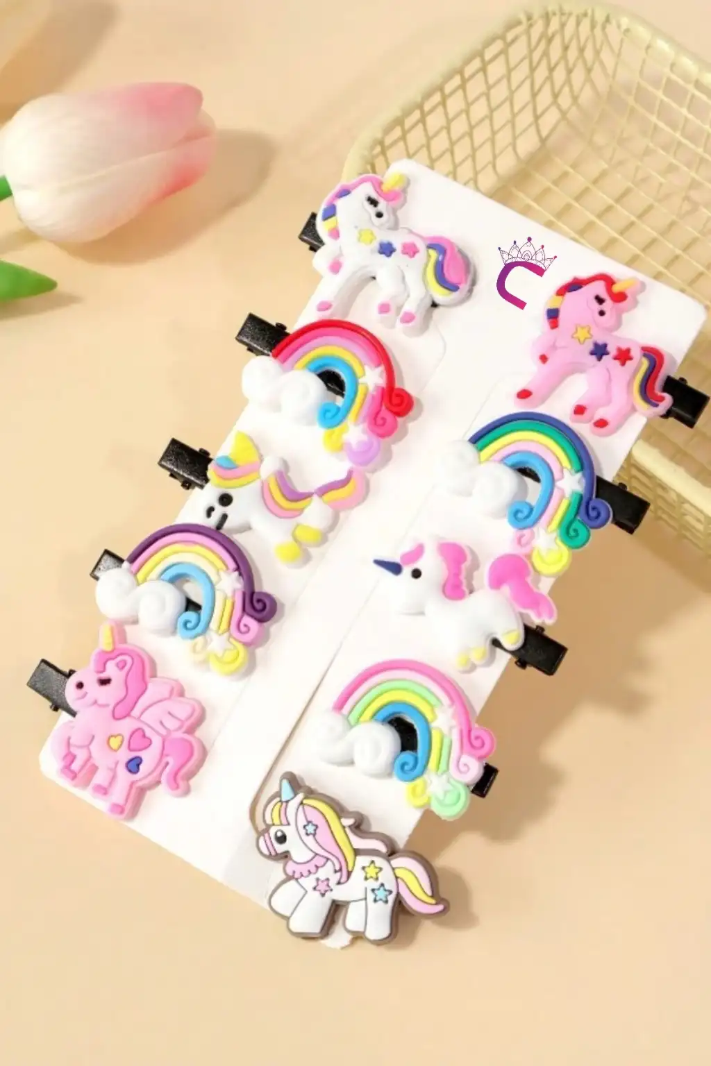10'lu Unicorn Gökkuşağı Tasarım Kız Çocuk Pens Toka Seti - Sevimli Bebek Saç Tokası Klips Toka