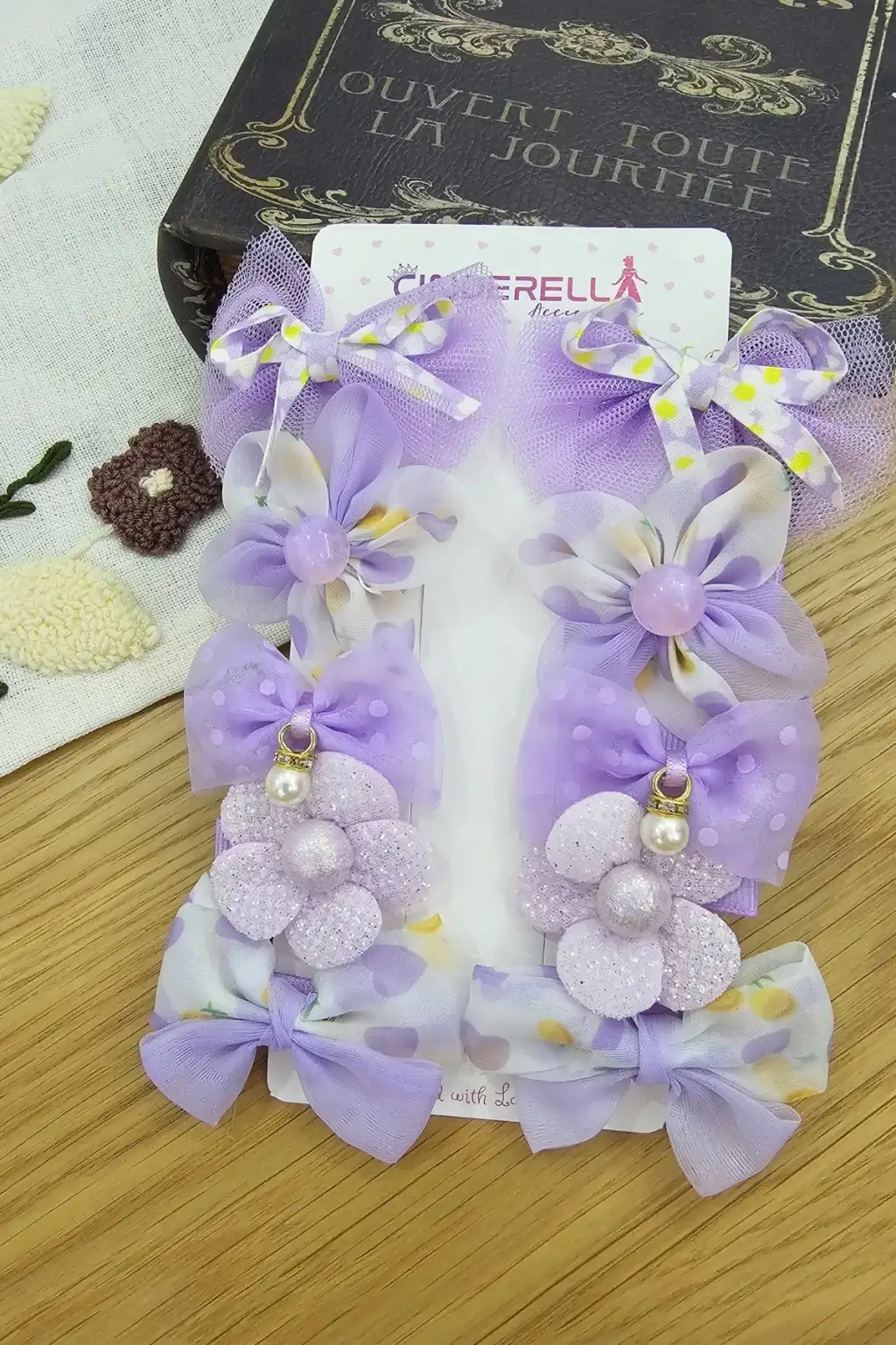 Lila rengi ve zarif inci taş detaylarıyla süslenmiş kelebek desenli tokalar, şıklığı ve neşeyi saçlara taşır.