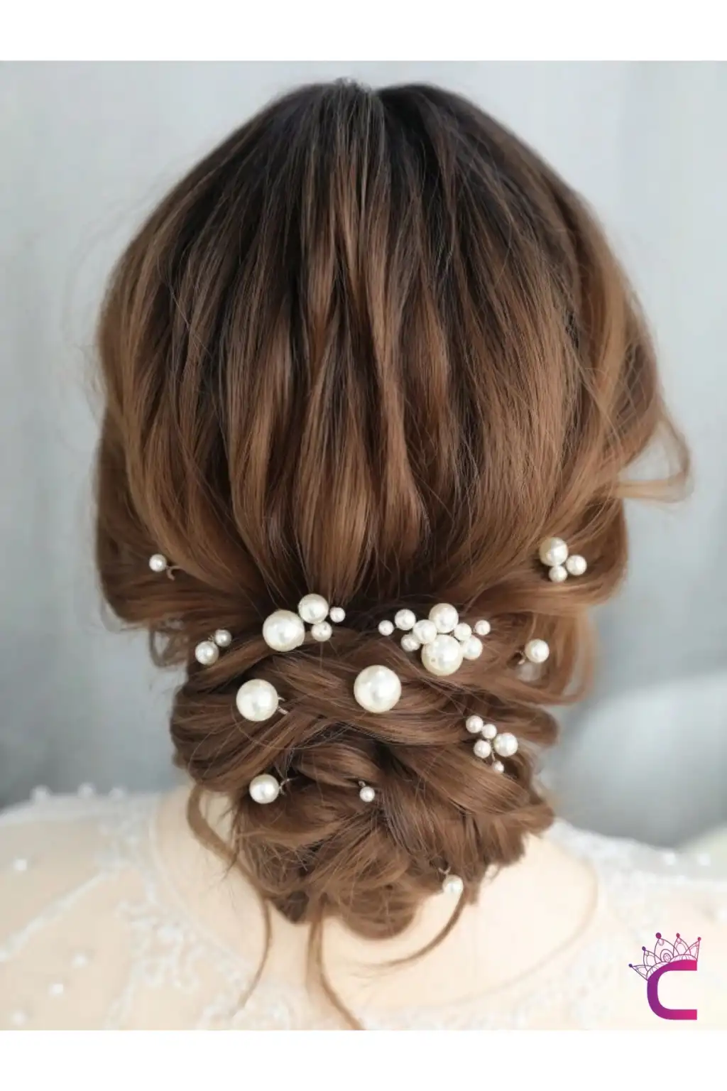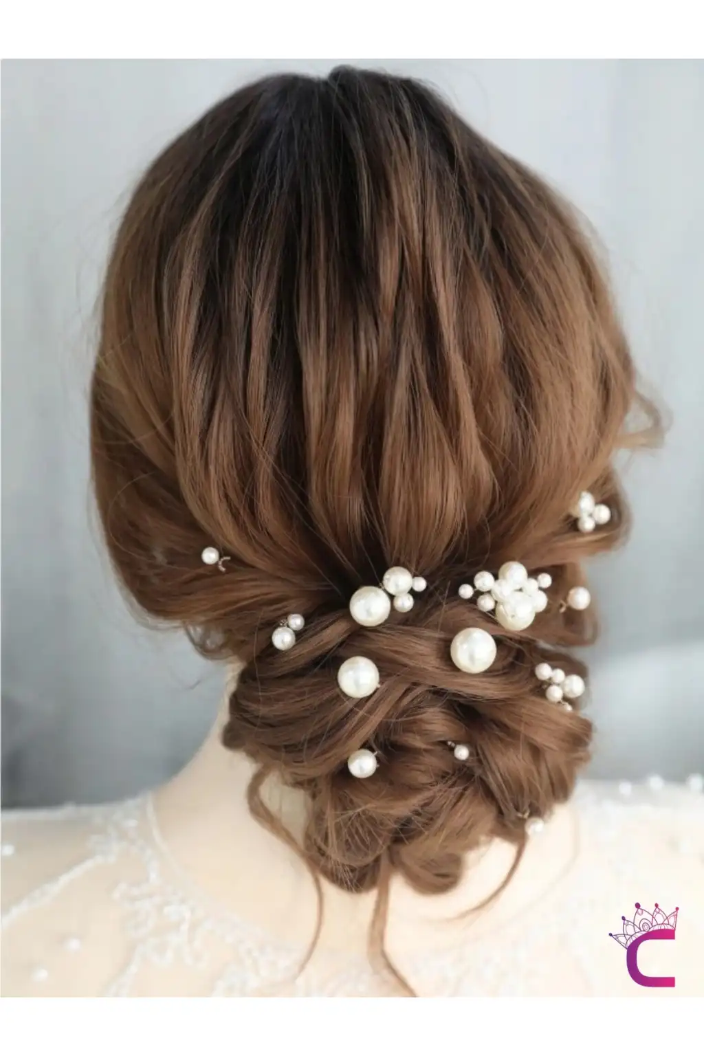 Her bir tokada bulunan inci detayları ile göz alıcı bir parlaklık sunar ve gelinliğinize zarafet katar.