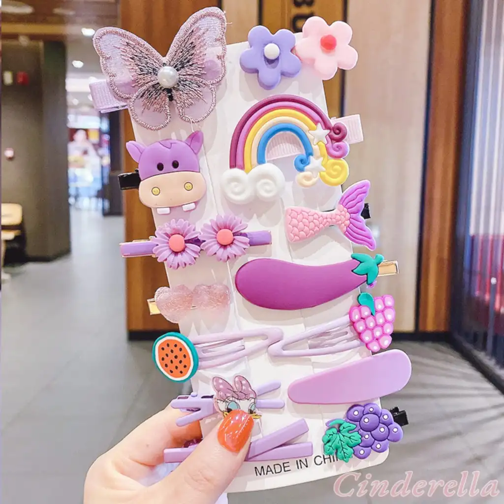 14'lü Lila Tonlu Çocuk Pens Klipsli Çıtçıt Toka Seti - Kız Çocuk Saç Tokası Model-1