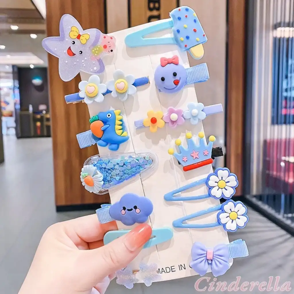 14'lü Mavi Tonlu Çocuk Pens Klipsli Çıtçıt Toka Seti Model-5