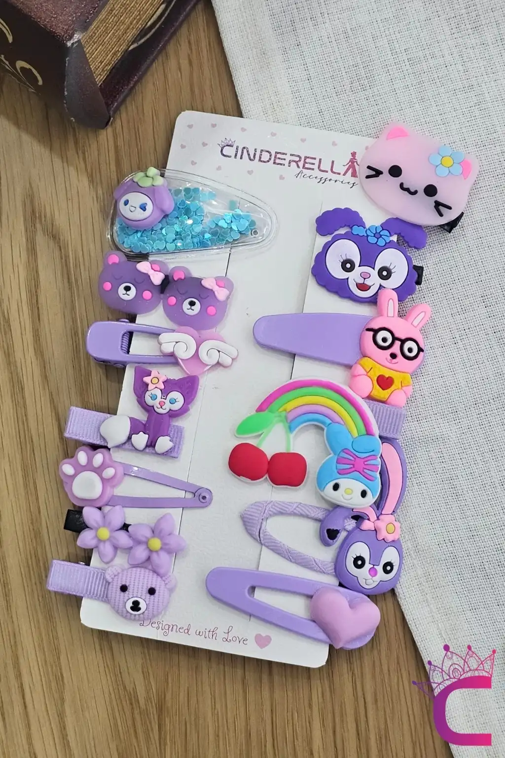 - 14 farklı renkteki pembe ve lila tonlarıyla kız çocuklarının saçlarını şıklığa kavuşturur. - Renkli figürlerle süslenmiş pens klipsleri, çocukların saçlarına eğlenceli bir dokunuş ekler.