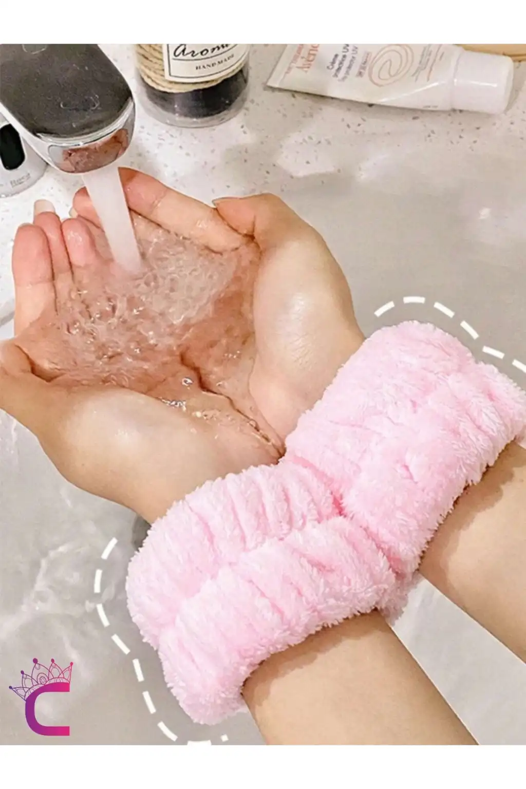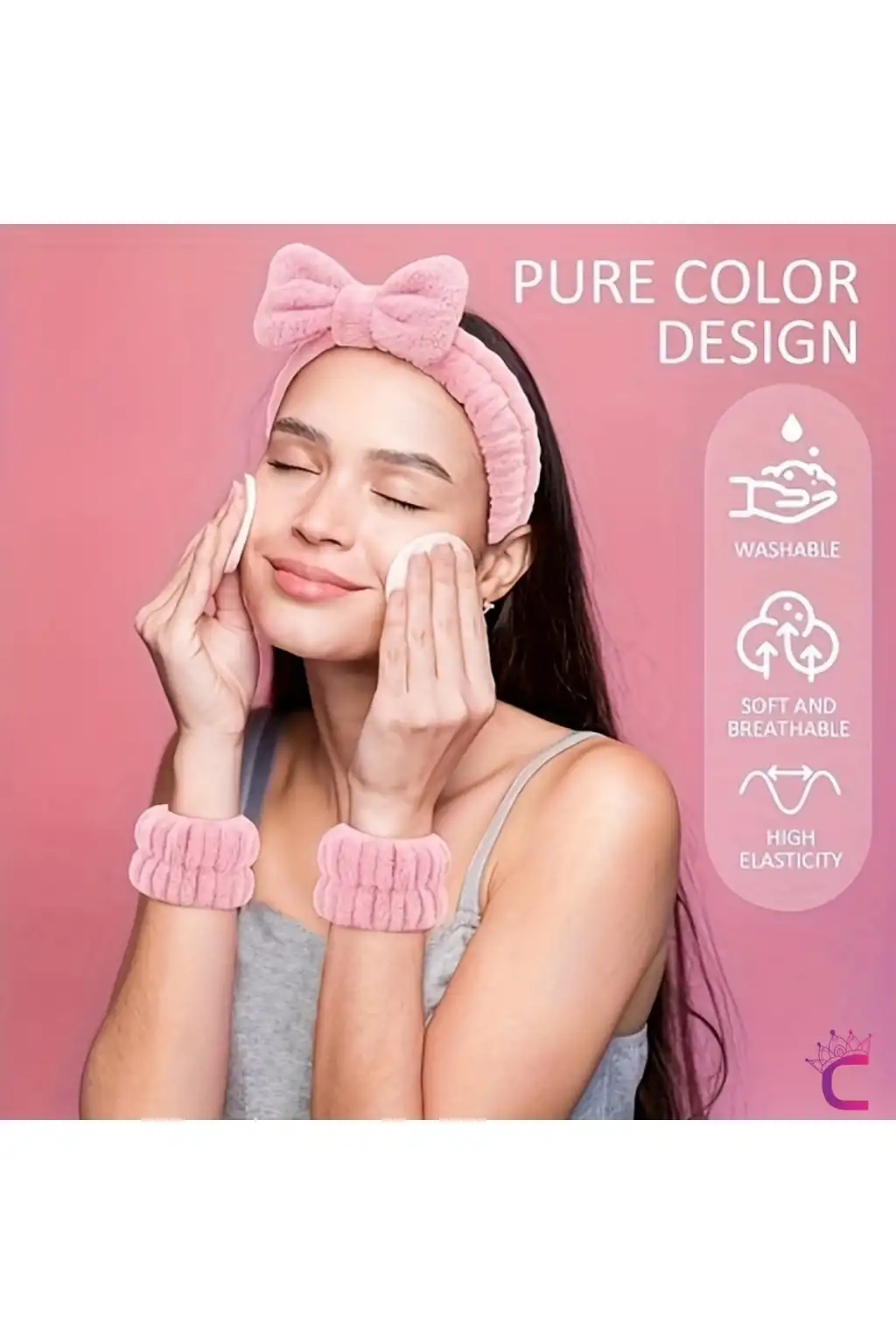 16'lı Soft Havlu Saç Bandı ve Bileklik Makyaj Uygulama Seti Pembe - Kadın Cilt Bakımı Saç Tokası