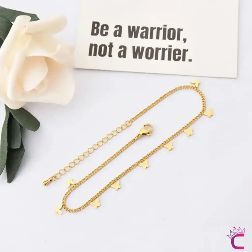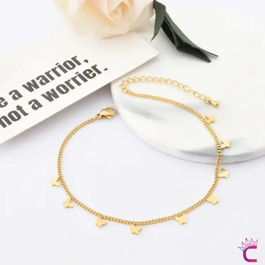 18k Altın Kaplama Paslanmaz Çelik Gold Kelebekli Kadın Halhal - Ayak Bilekliği Zinciri Halhal
