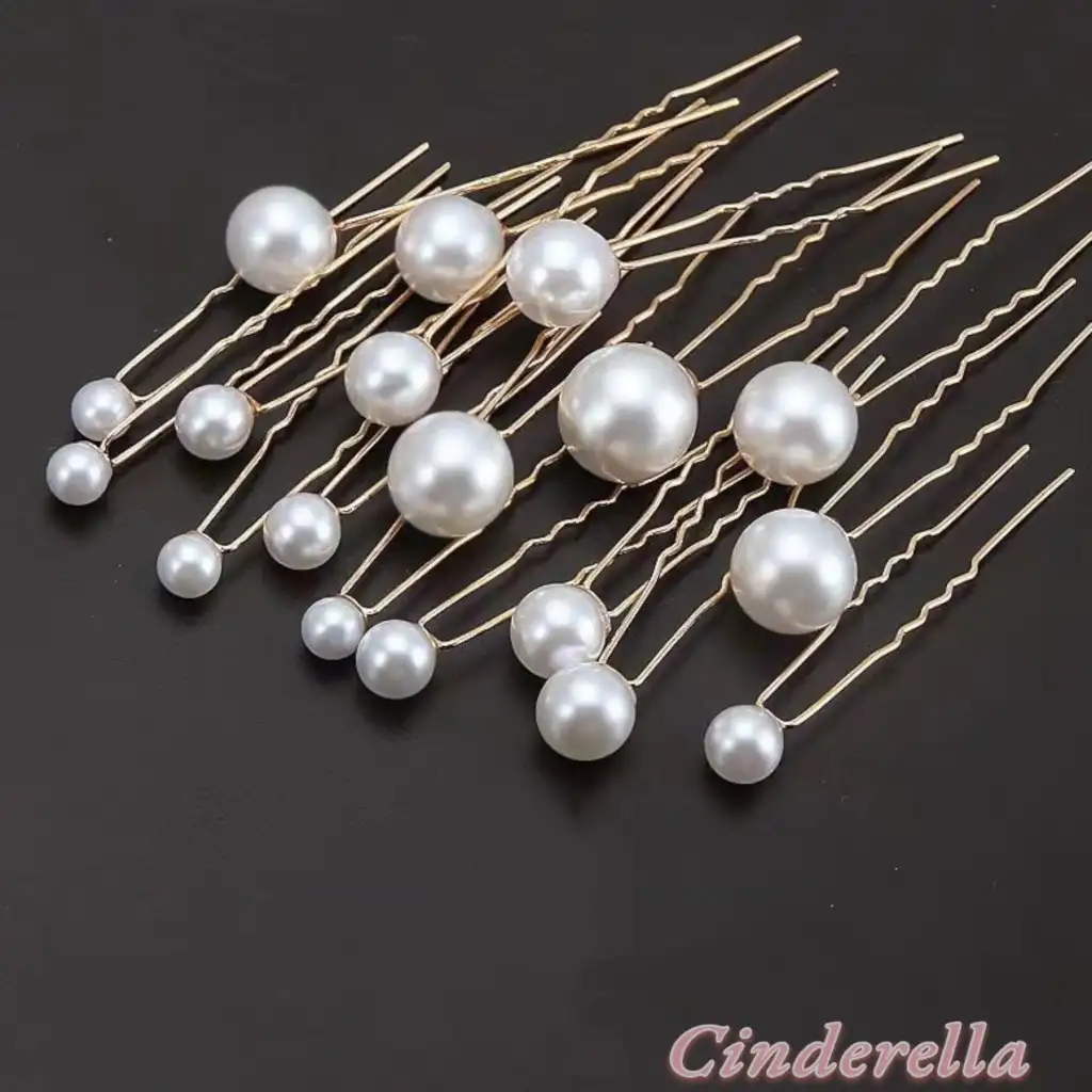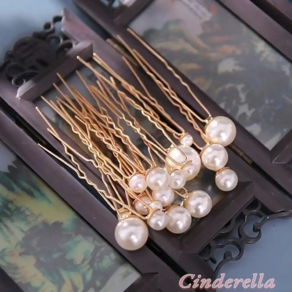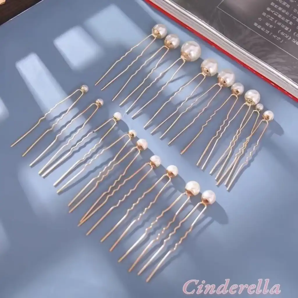 18'li Düğün Gelin İnci Firkete Set Gold - Nişan Topuz Tokası - Doğum Günü Parti Saç Aksesuarı