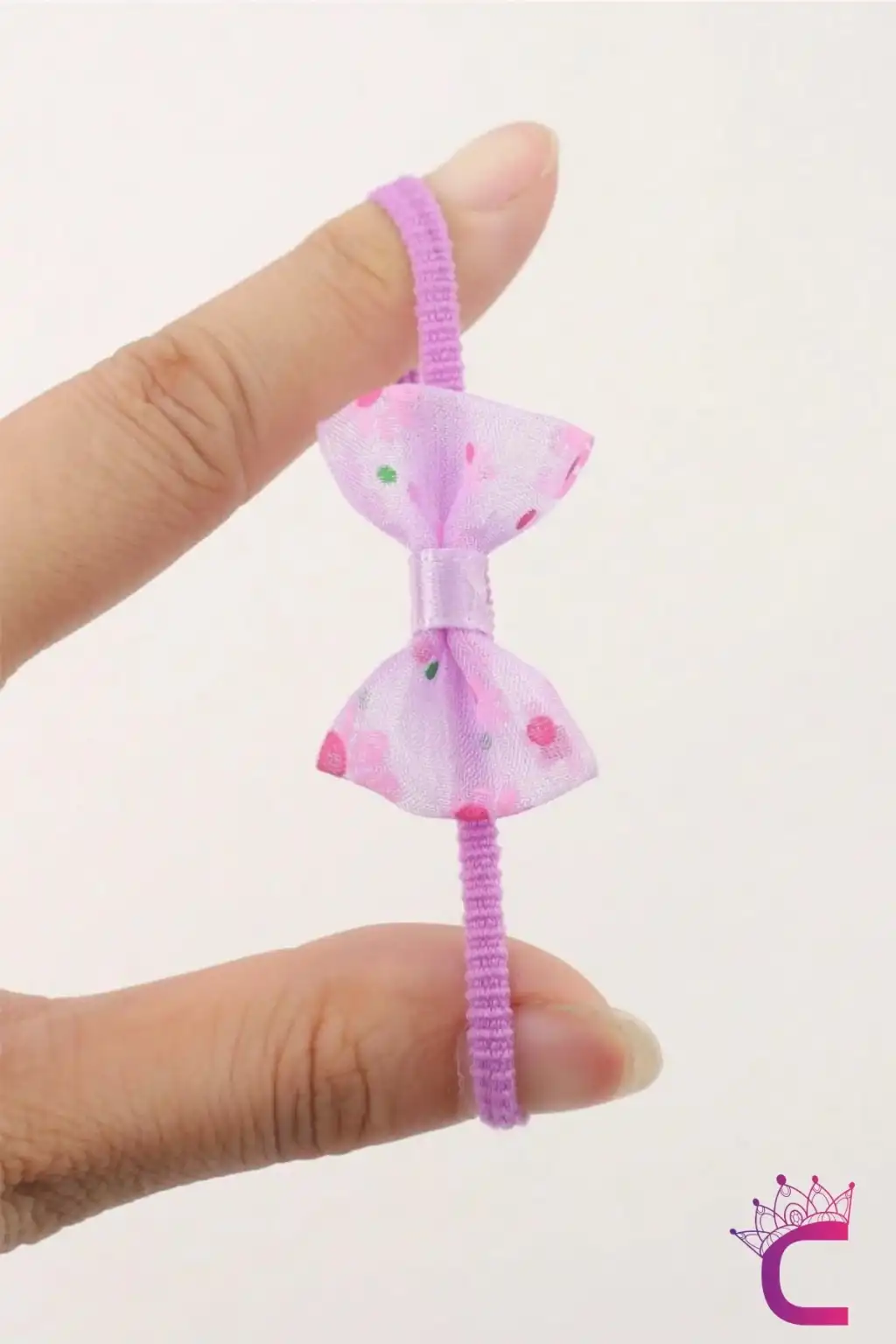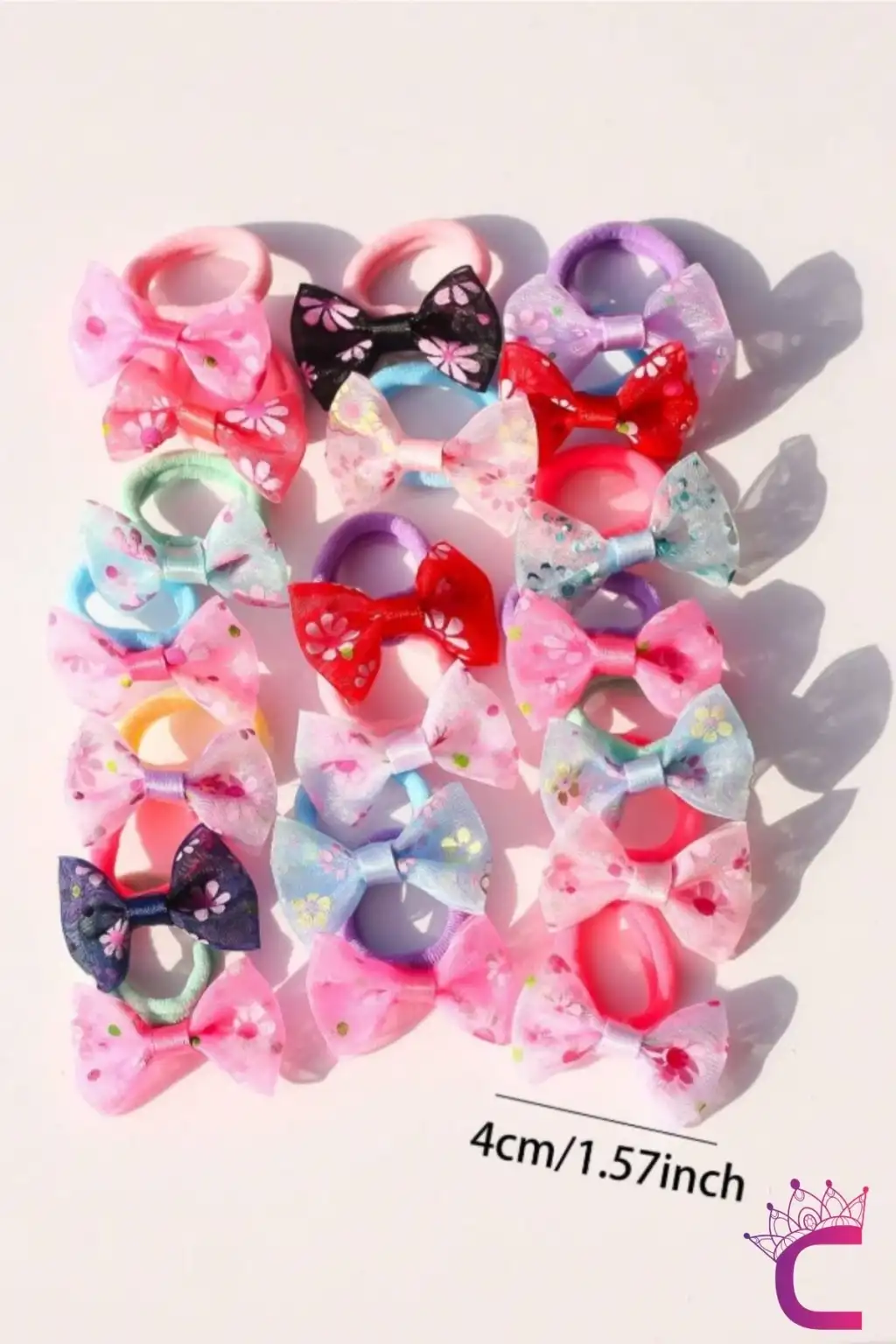 20'li Çantalı Çiçekli Fiyonk Kız Bebek Yumuşak Havlu Lastik Toka Seti - Kurdeleli Çocuk Saç Tokası
