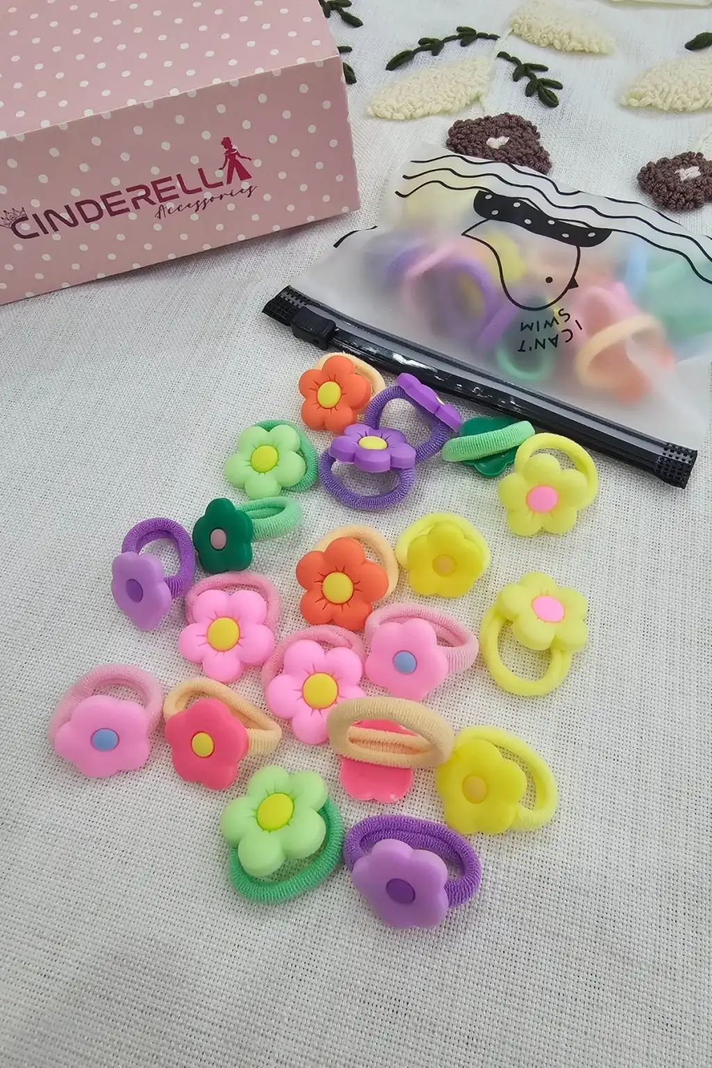 20'li Çantalı Yumuşak Acıtmaz Kız Bebek Havlu Lastik Toka Seti - Renkli Çocuk Lastikli Saç Tokası