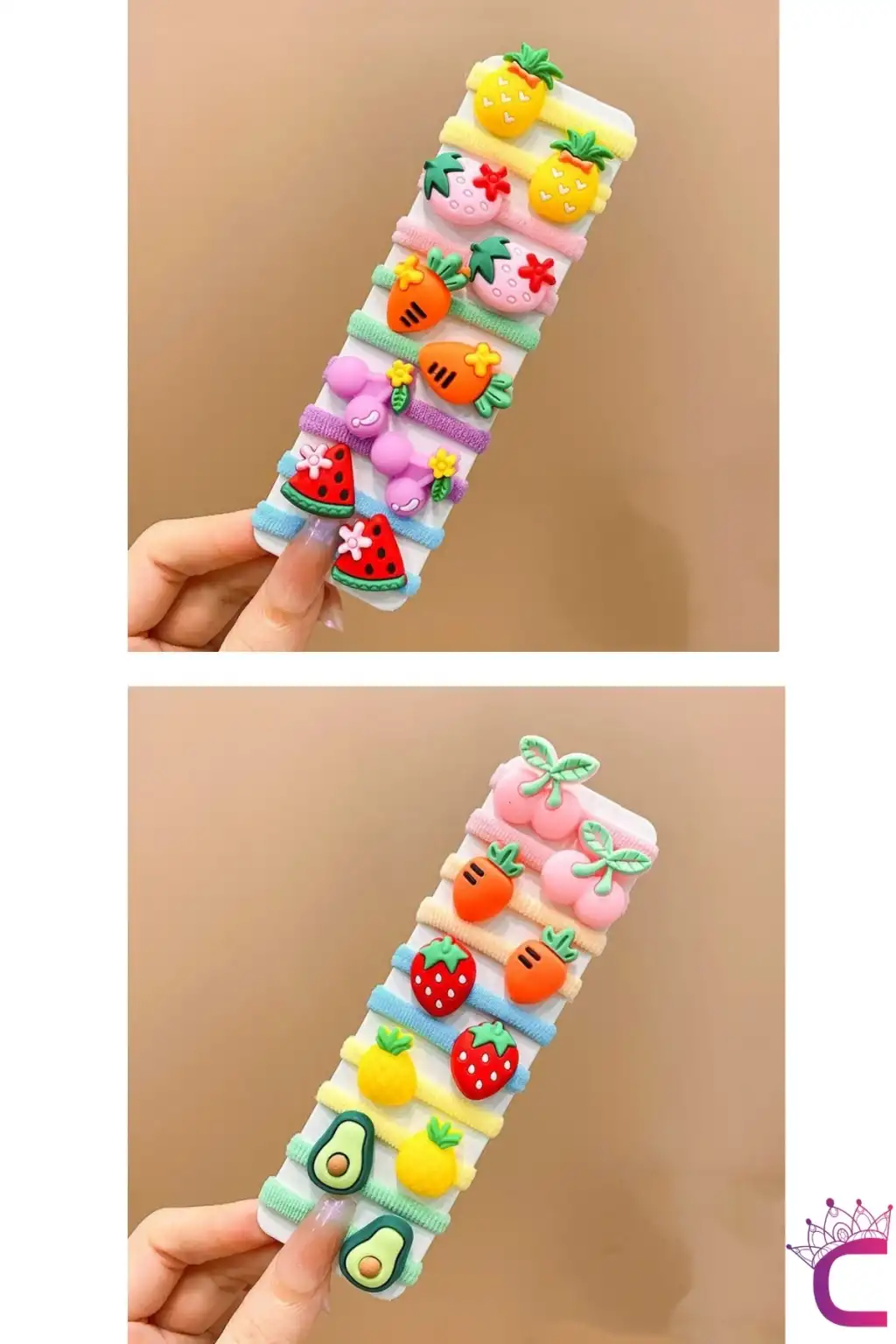 10'lu Plumeria Çiçekli Dayanıklı Renkli Kız Çocuk Lastik Toka - Gür Saç Esnek Lastikli Saç Tokası