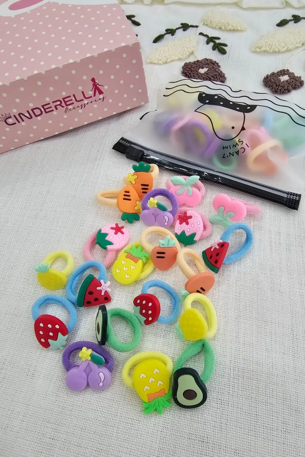 20'li Çantalı Yumuşak Acıtmaz Kız Bebek Havlu Lastik Toka Seti - Renkli Çocuk Lastikli Saç Tokası