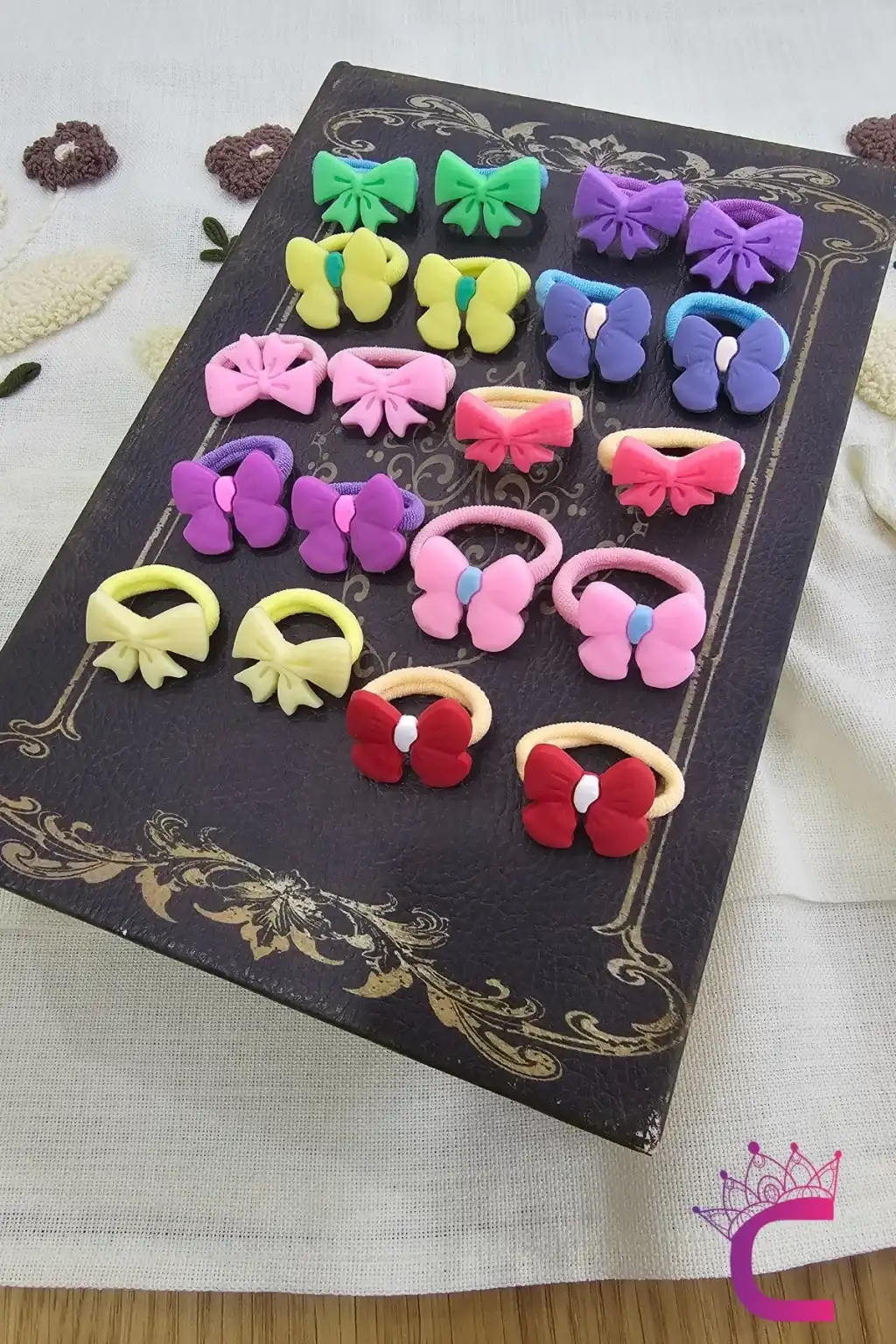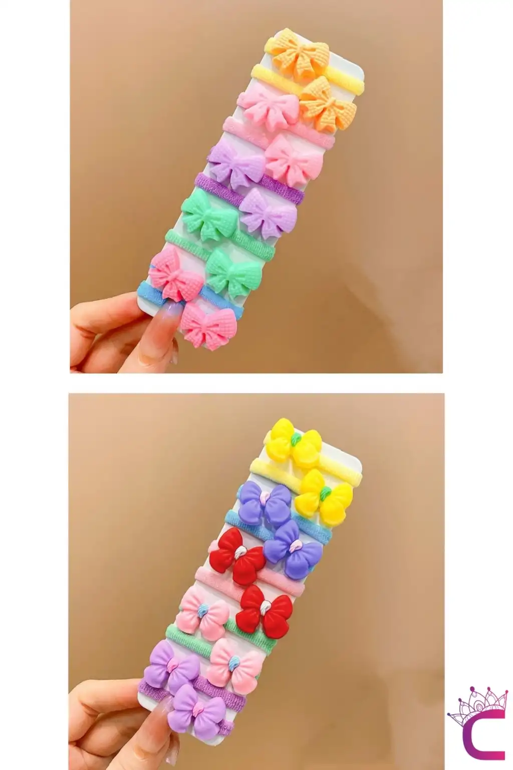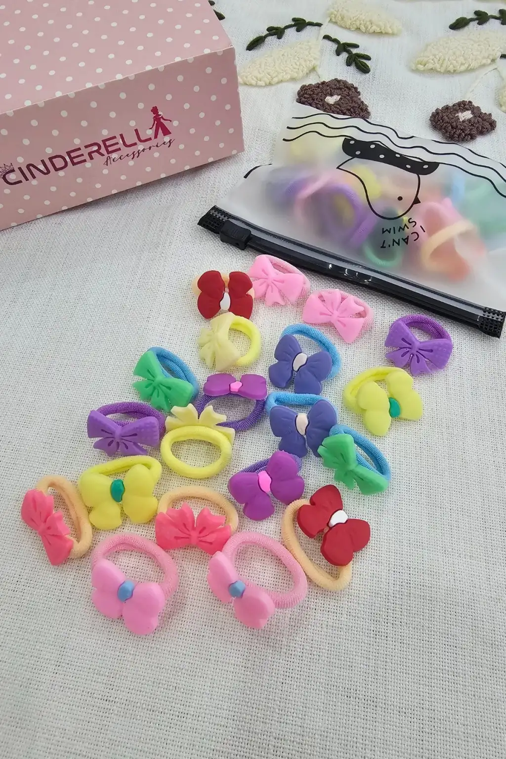 20'li Çantalı Yumuşak Acıtmaz Kız Bebek Havlu Lastik Toka Seti - Renkli Çocuk Lastikli Saç Tokası