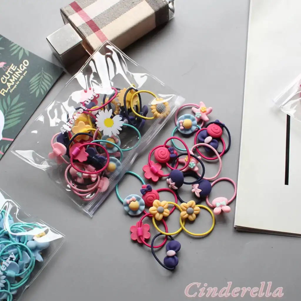 20'li Kız Çocuk Lastik Toka Seti Karışık Renkli - Çiçek Kurdele Fiyonk Figür Lastikli Saç Tokası