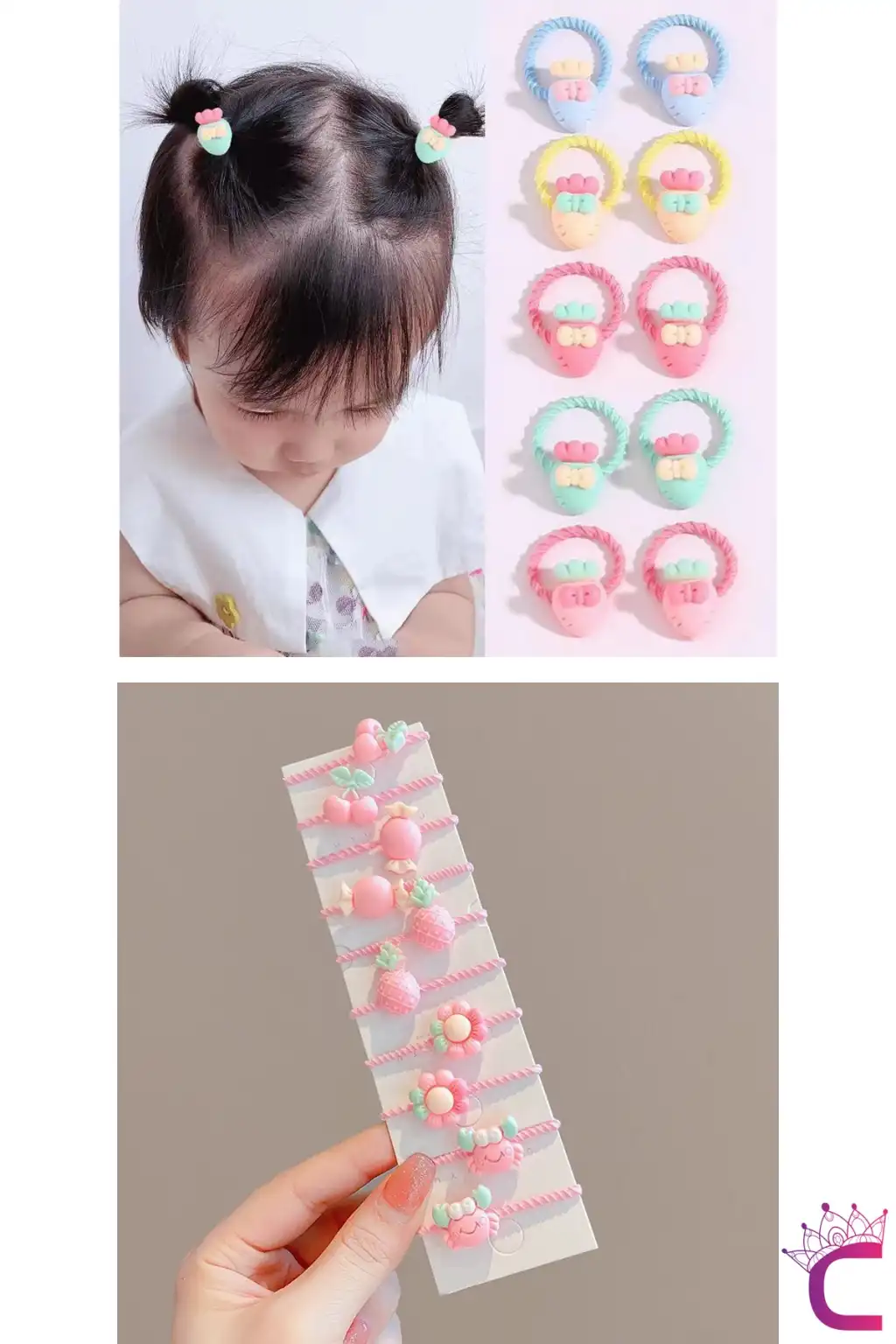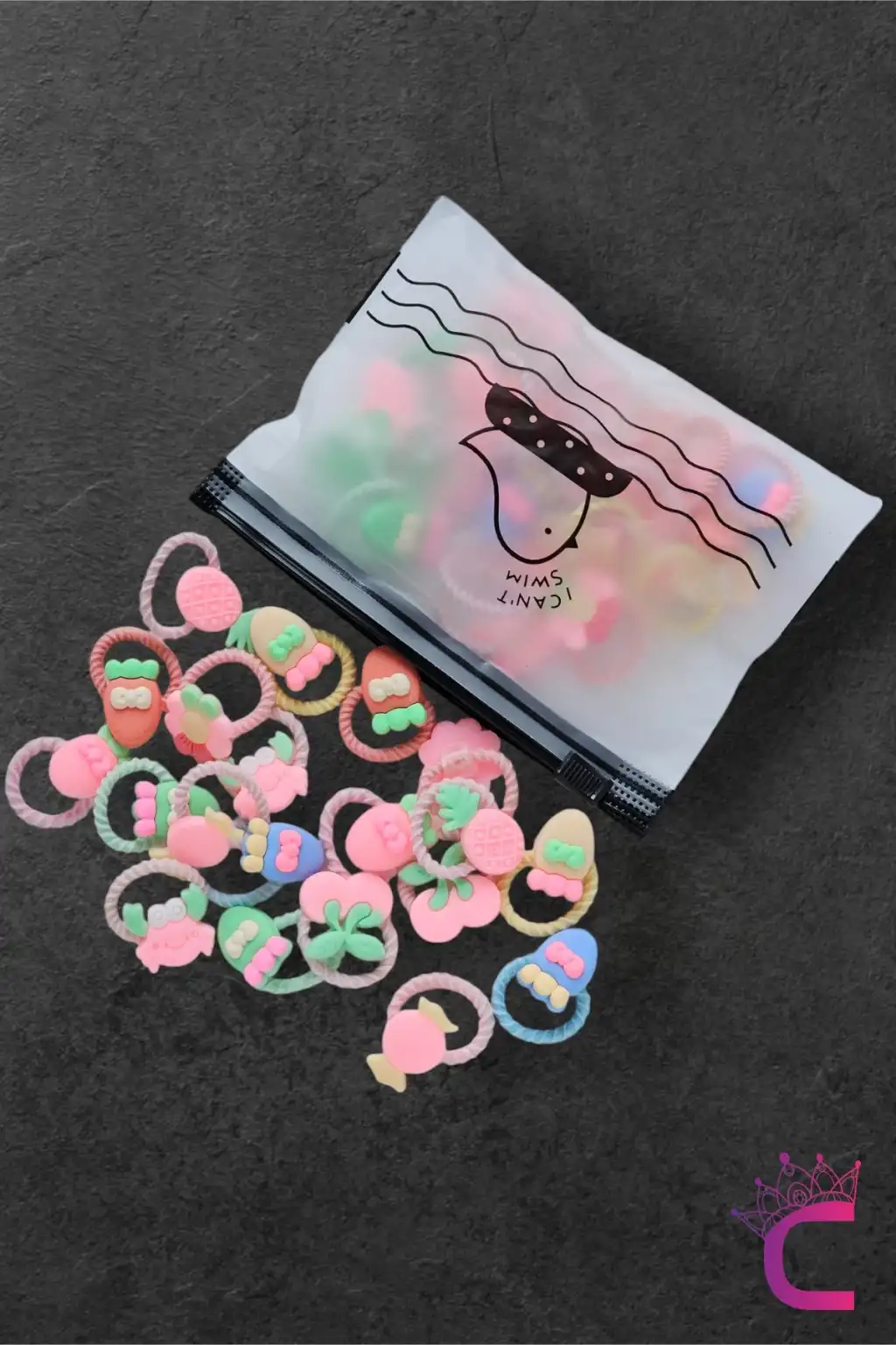 20'li Renkli Karışık Figürlü Dayanıklı Kız Çocuk Lastik Toka Seti - Sevimli Bebek Lastikli Toka