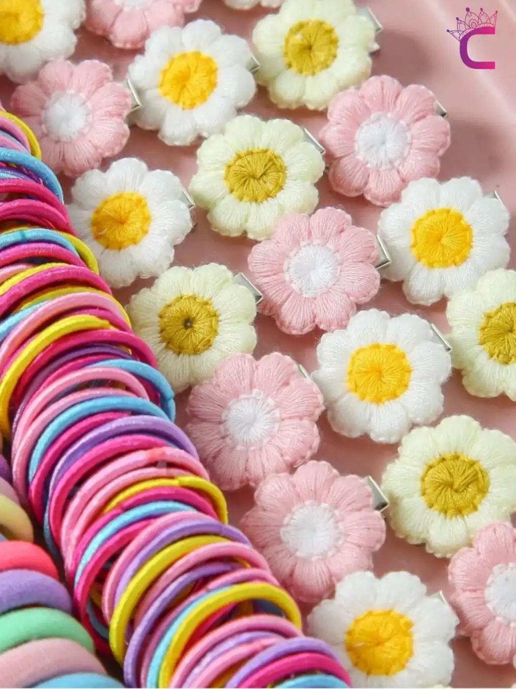 - Çiçek desenleriyle süslenmiş lastik pensler, hem günlük kullanım hem de özel günler için idealdir.