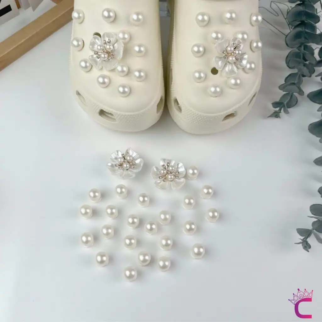 24'lü Incili Taşlı Çiçekli Terlik Süsü Seti Jibbitz - Cross Terlik Süsleri Crocks Charm Aksesuar