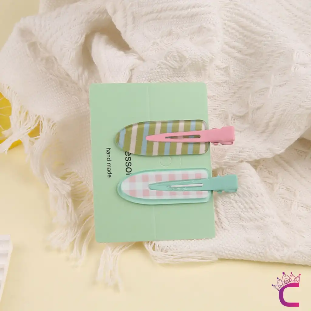 2'li Asetat Dayanıklı İz Yapmayan Makyaj Tokası Çizgili Desen - Cilt Bakımı Klips Saç Pens Toka Seti