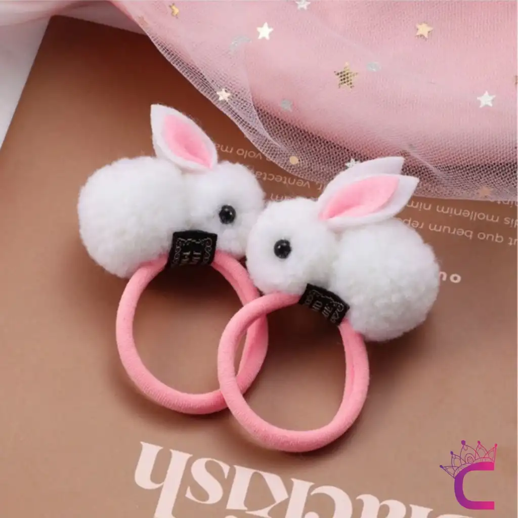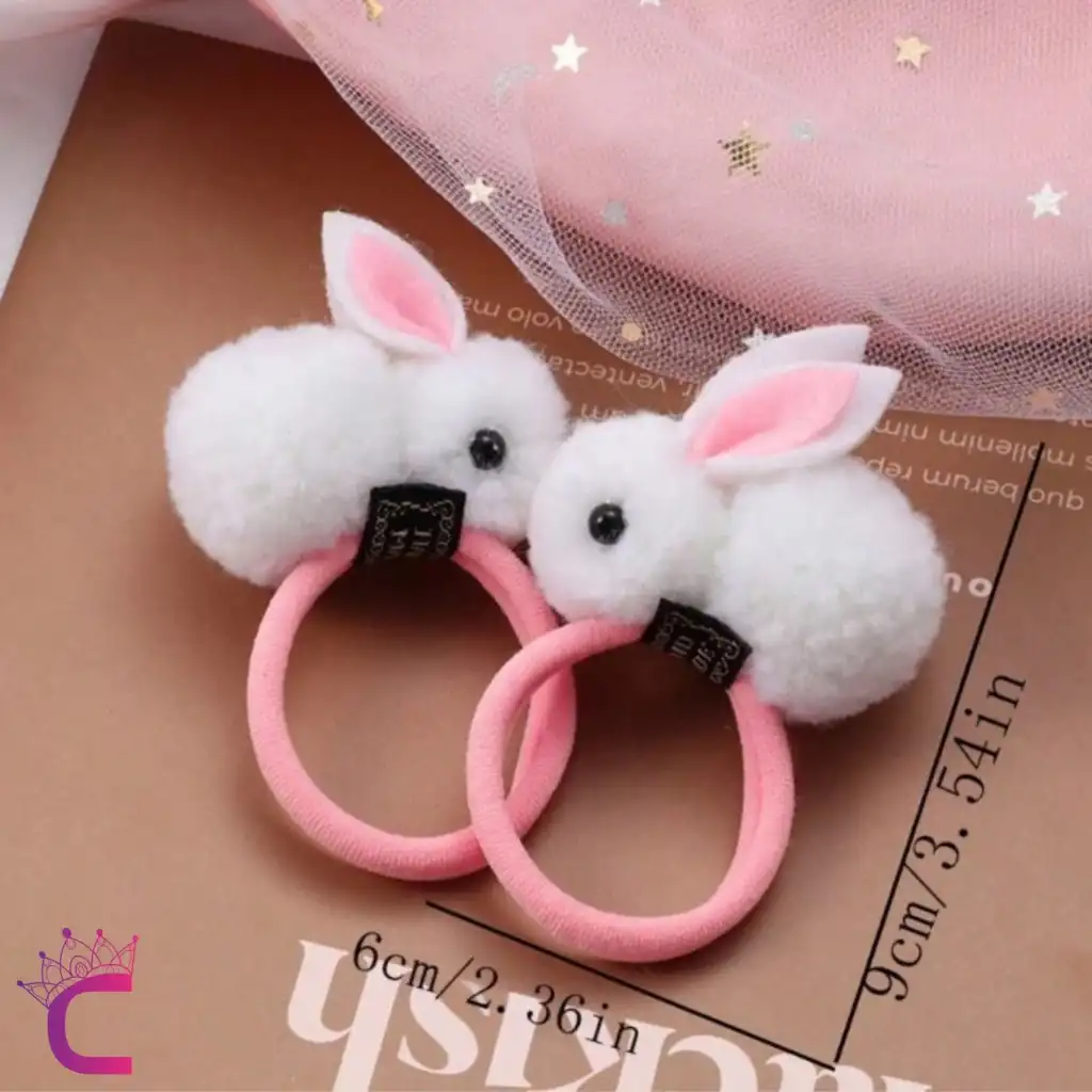 - İki adet beyaz tavşan figürlü lastik toka, kız çocuklarının saçlarını şık ve eğlenceli bir şekilde toplamalarını sağlar.