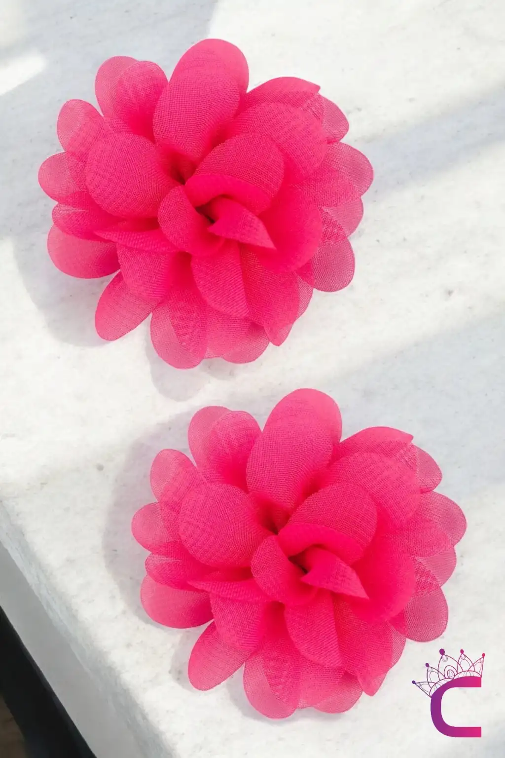 2'li Chiffon Flower Kız Çocuk Toka Seti Fuşya Renkli - Çiçekli Bebek Çocu Çıt Çıt Pens Saç Tokası