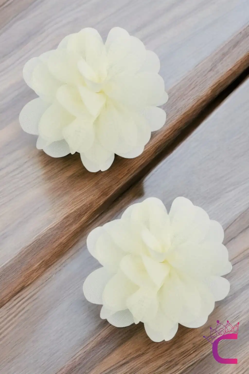 2'li Chiffon Flower Kız Çocuk Toka Seti Kırık Beyaz - Çiçekli Bebek Çocuk Saç Tokası Klips Pens Toka