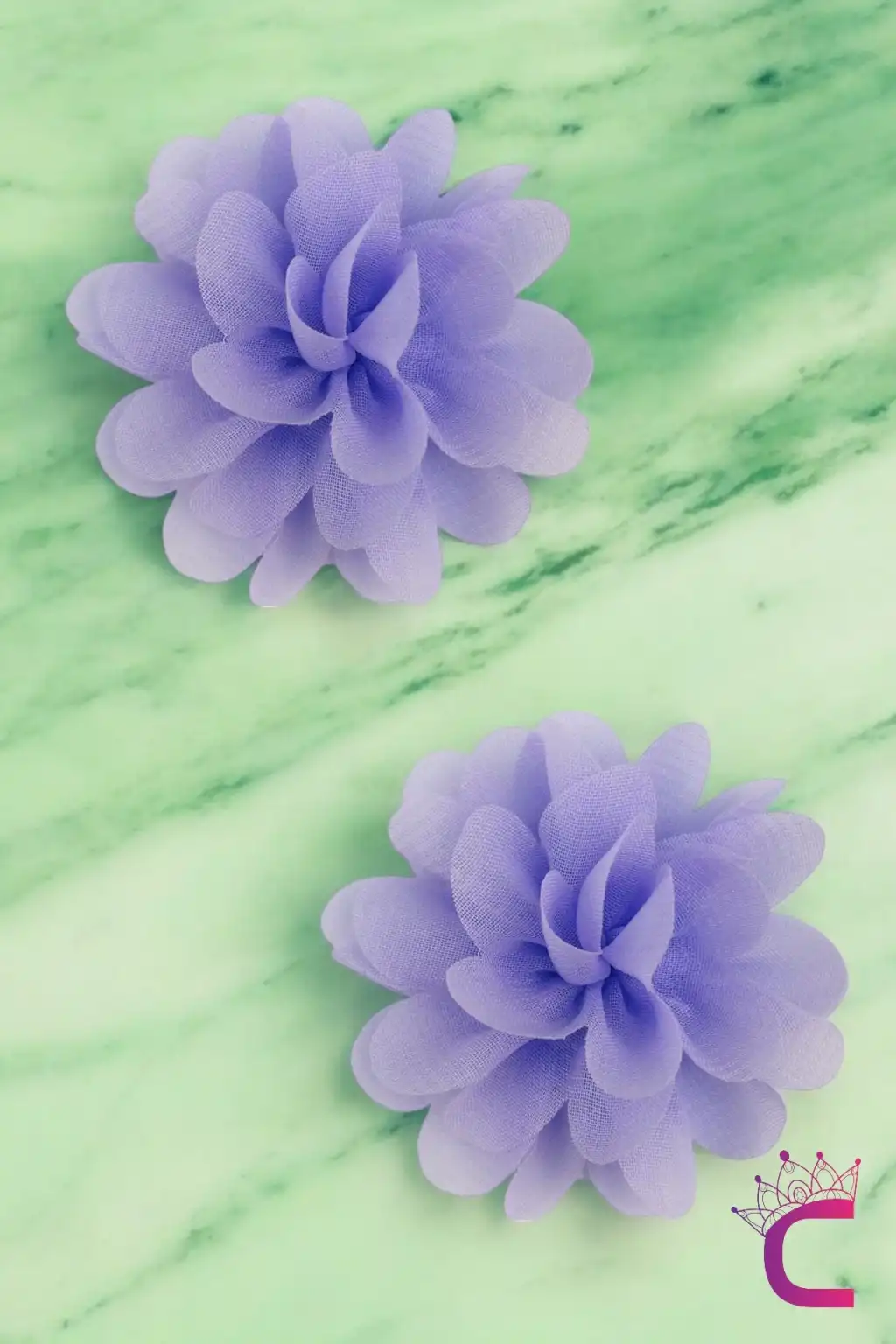 2'li Chiffon Flower Kız Çocuk Toka Seti Lila - Çiçekli Bebek Çocuk Saç Tokası Çıtçıtlı Pens Toka