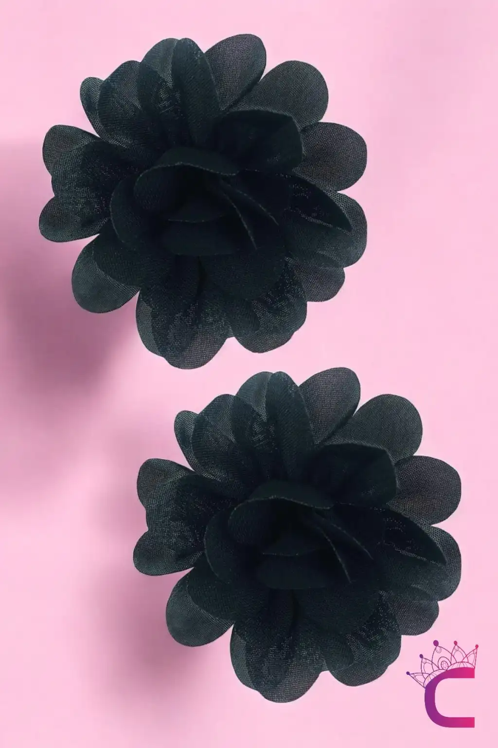 2'li Chiffon Flower Kız Çocuk Toka Seti Siyah - Çiçekli Bebek Çocuk Saç Tokası Klips Pens Toka