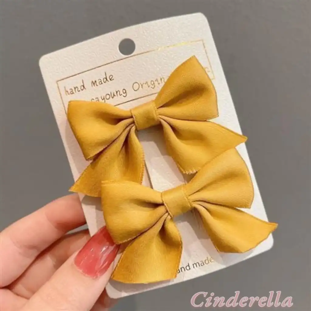 2'li Çocuk Saten Fiyonk Toka Seti Sarı - Kurdele Fiyonklu Klips Pens Saç Tokası