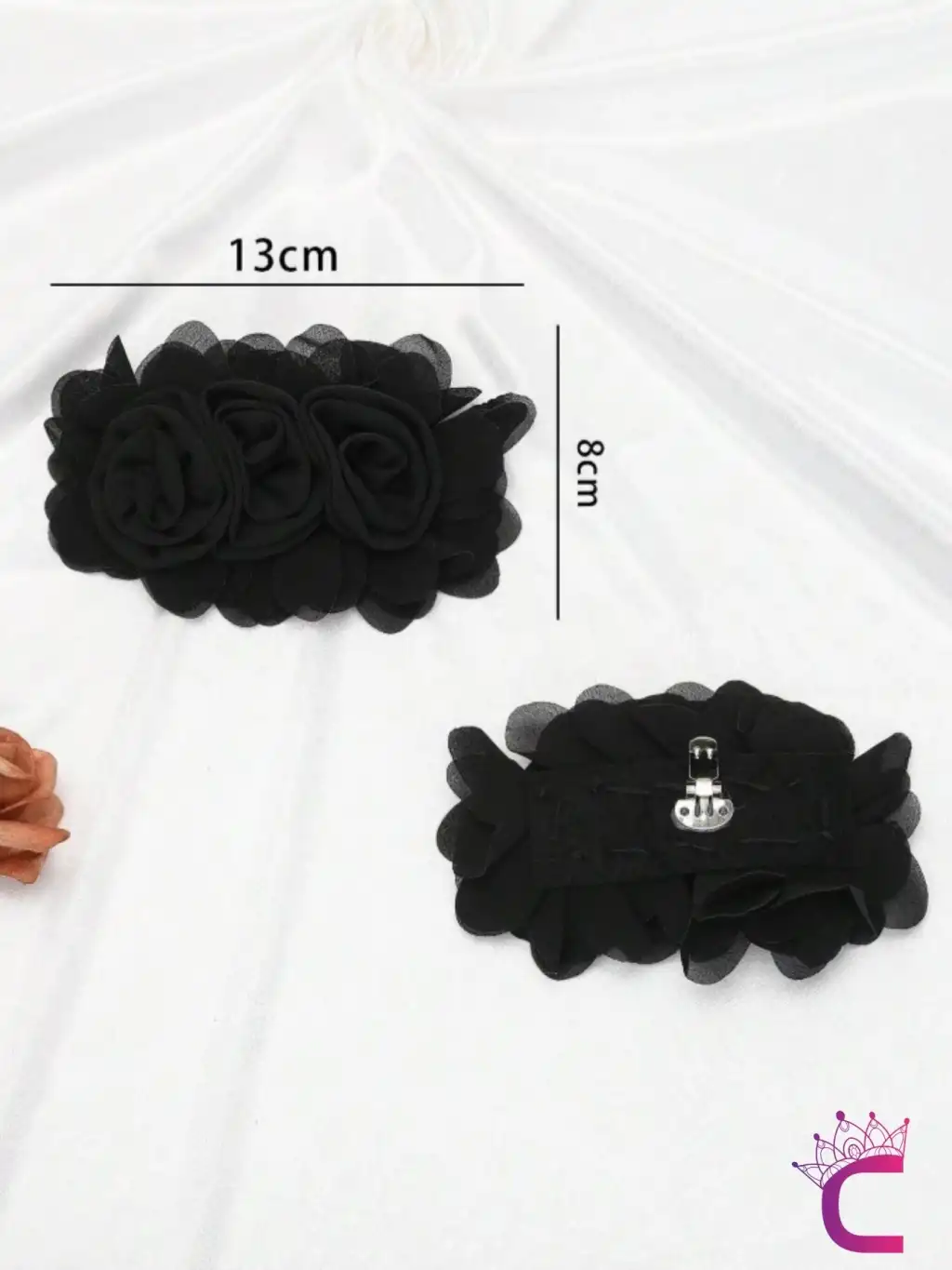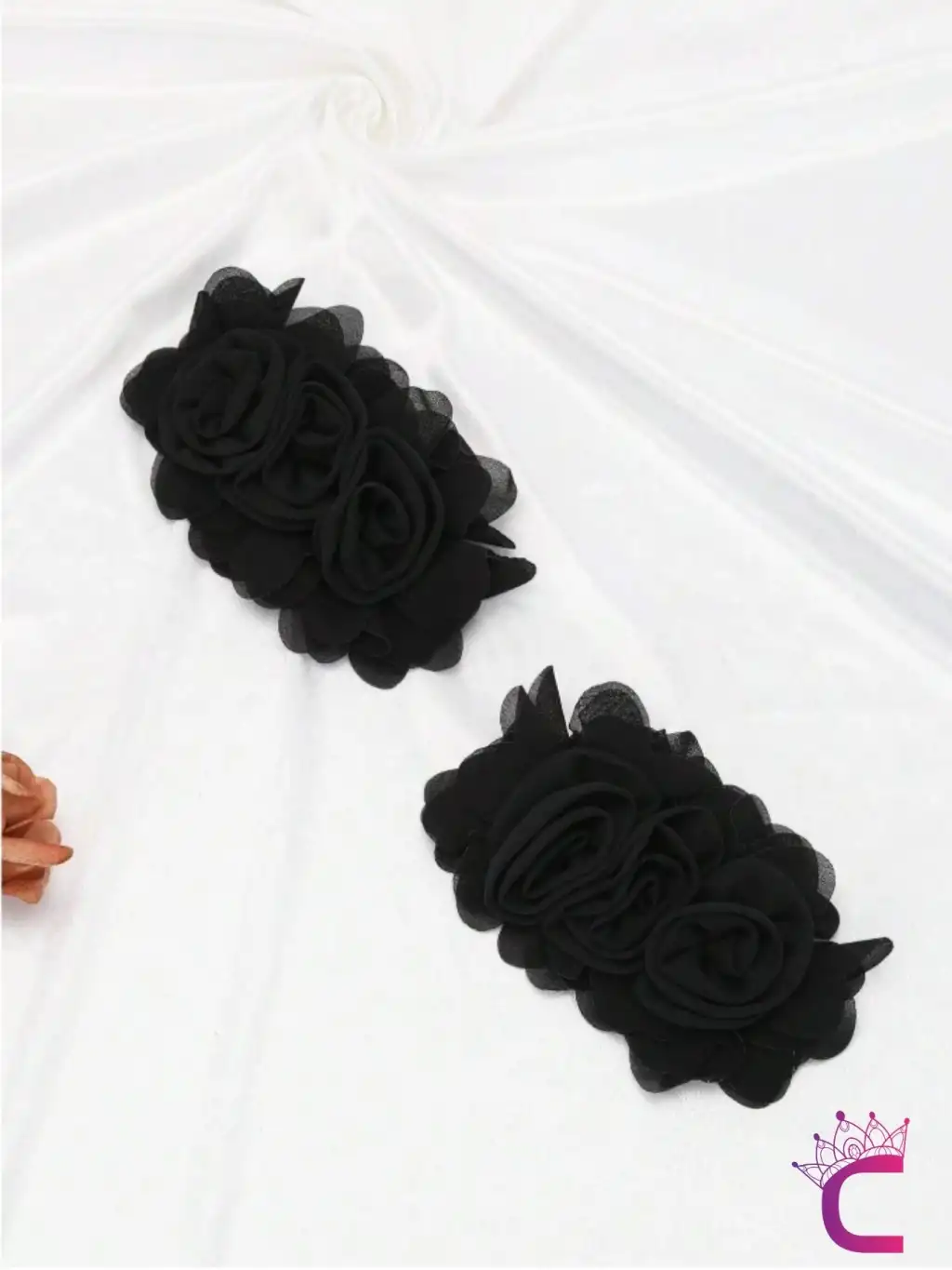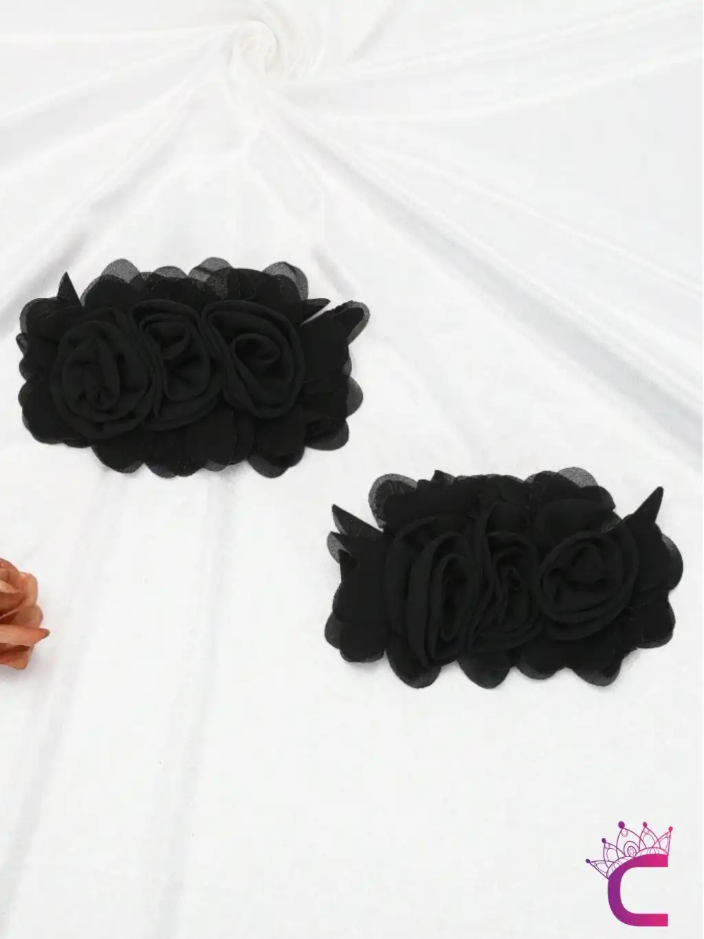 2'li Fransız Tarz Siyah Çiçekli Çıkarılabilir Klipsli Ayakkabı Süsü - Sandalet Babet Tokası Charmı