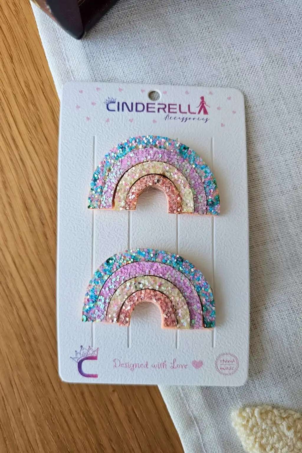 2'li Gökkuşağı Tasarım Saçsız Bebek Tokası - Az Saçlı Kız Bebek Toka Seti Çıtçıtlı Yenidoğan Tokası