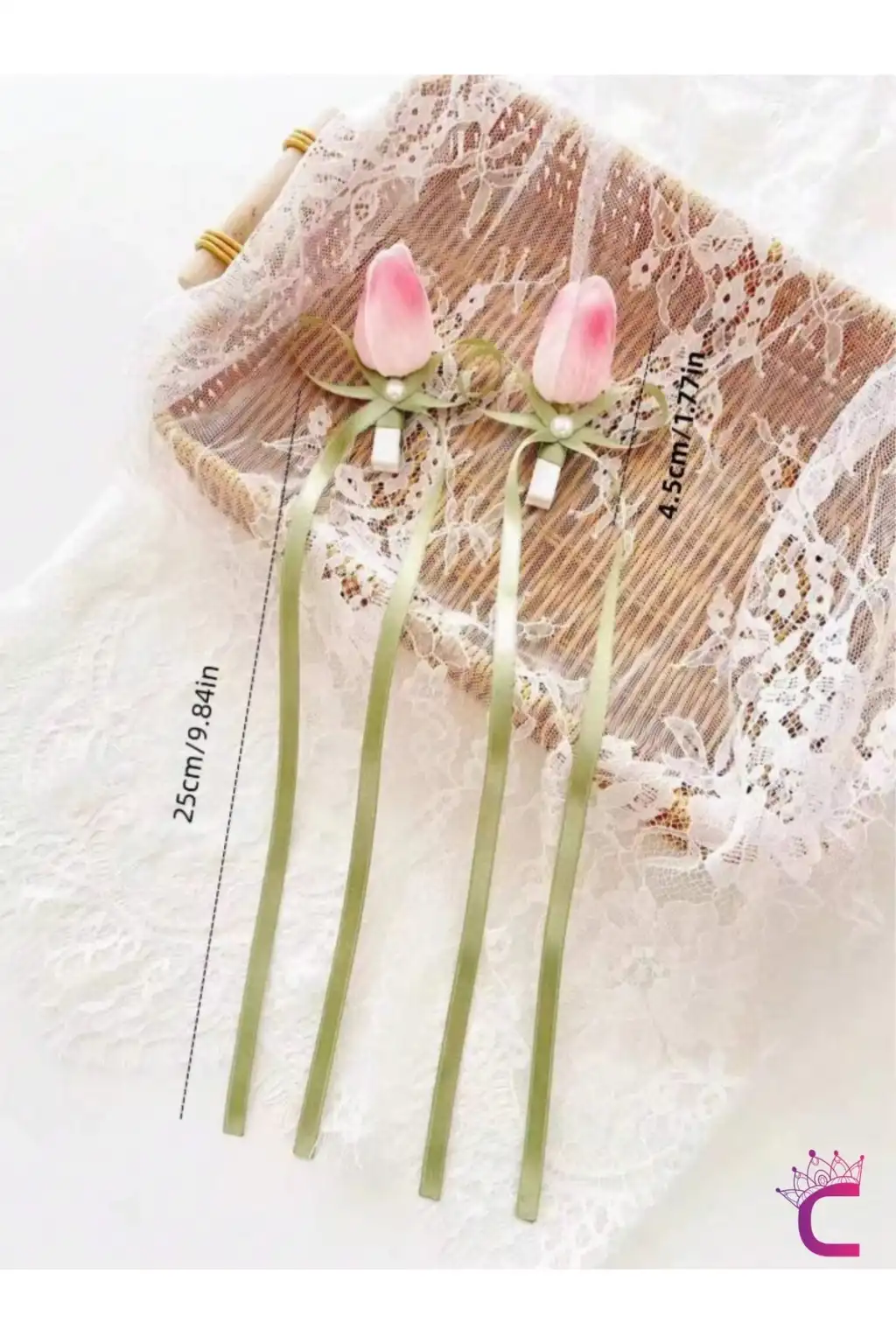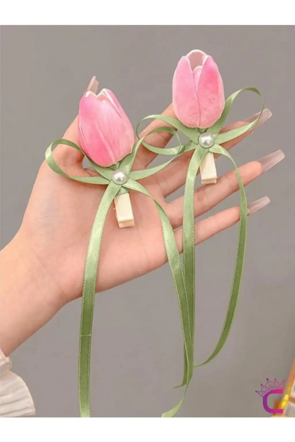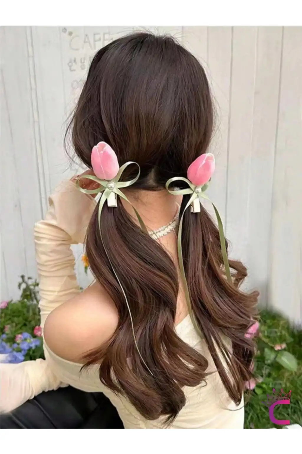 - Zarif tasarımıyla dikkat çeken pembe lale çiçekleri, saçlarınızı şık bir şekilde süsler.