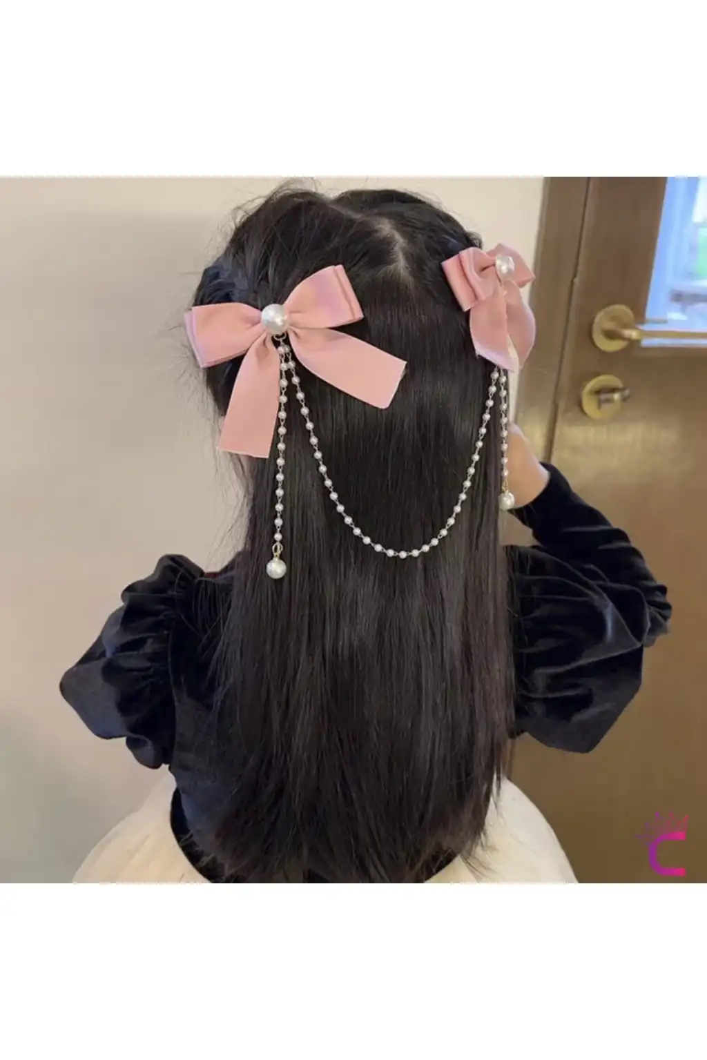 2'li İncili Sallantılı Pembe Fiyonk Pens Toka Seti - Zarif Kız Çocuk Kurdeleli Klipsli Saç Tokası