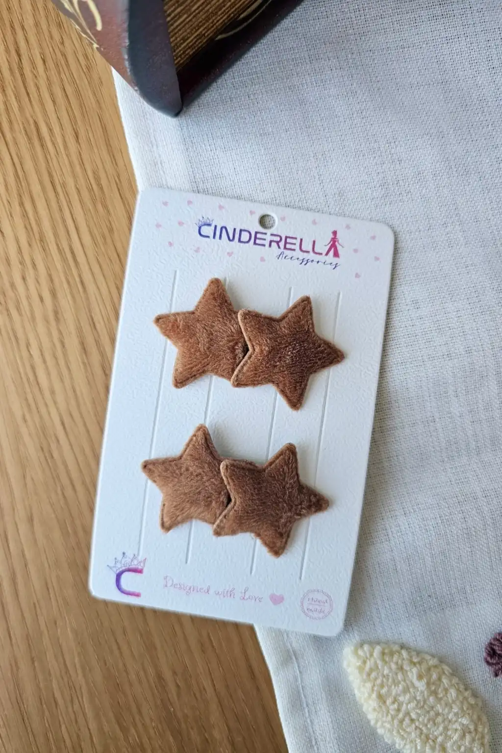 2'li Kahverengi Peluş Tüylü Saçsız Bebek Tokası - Az Saçlı Kız Bebek Çıtçıtlı Yenidoğan Toka Seti