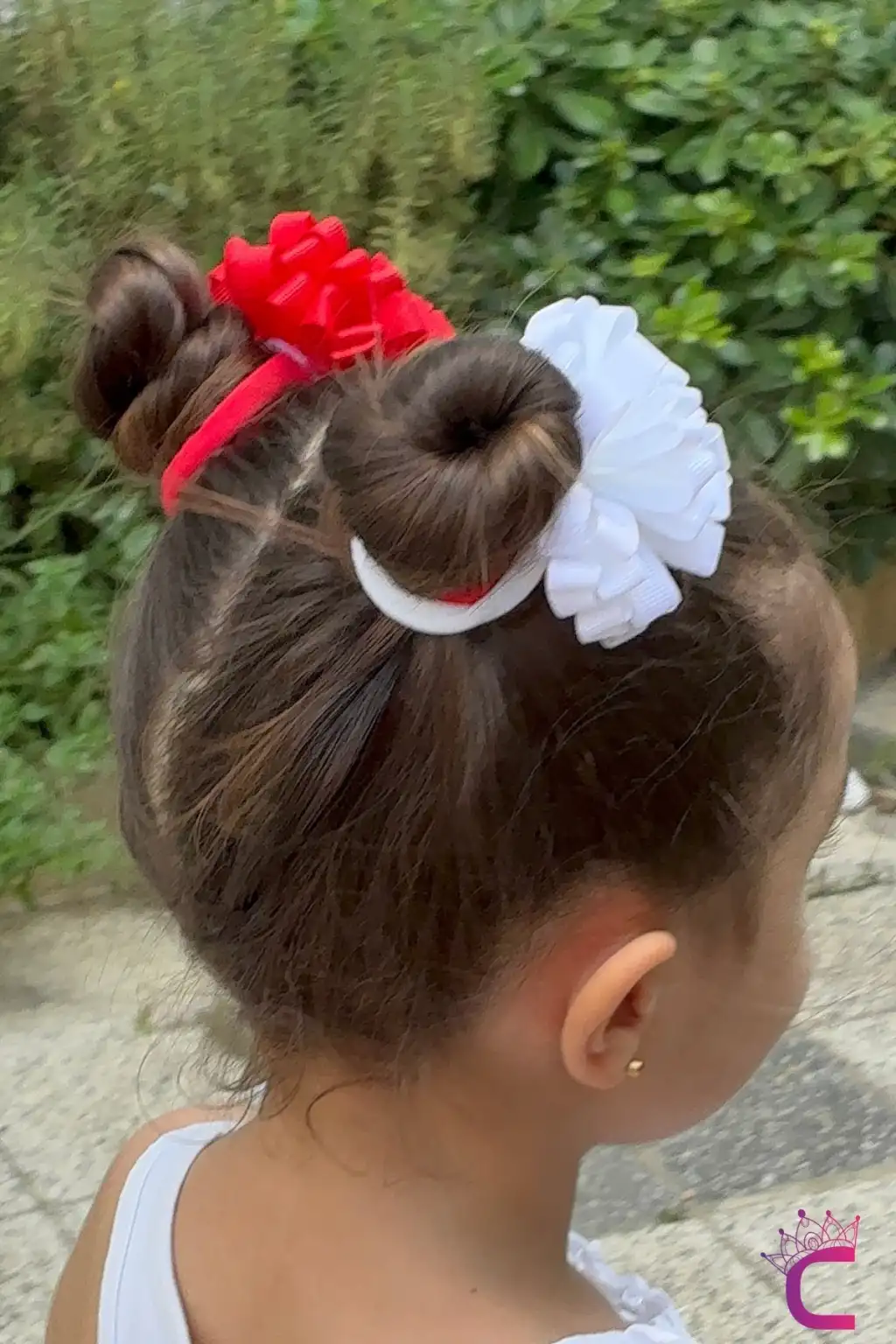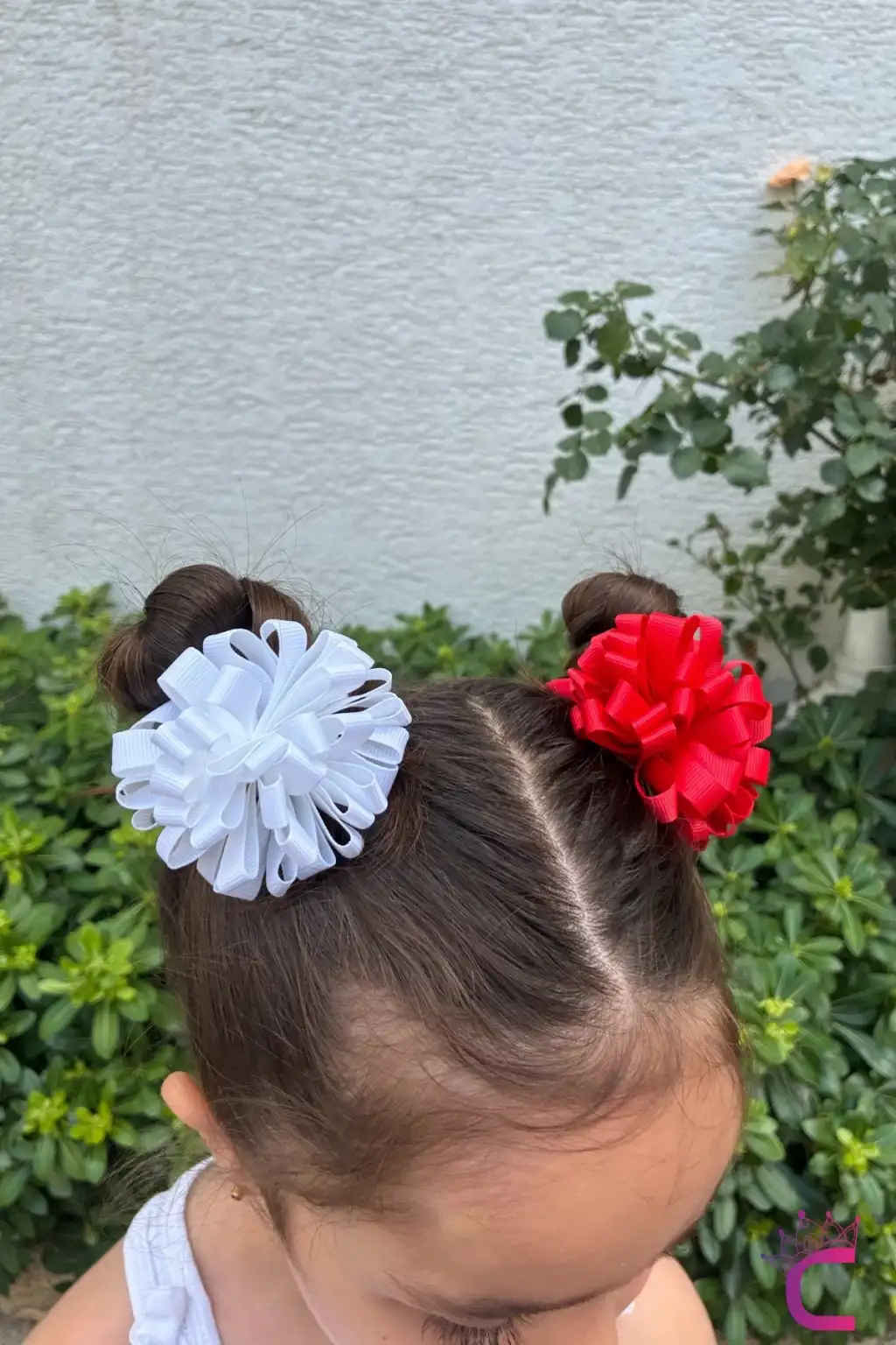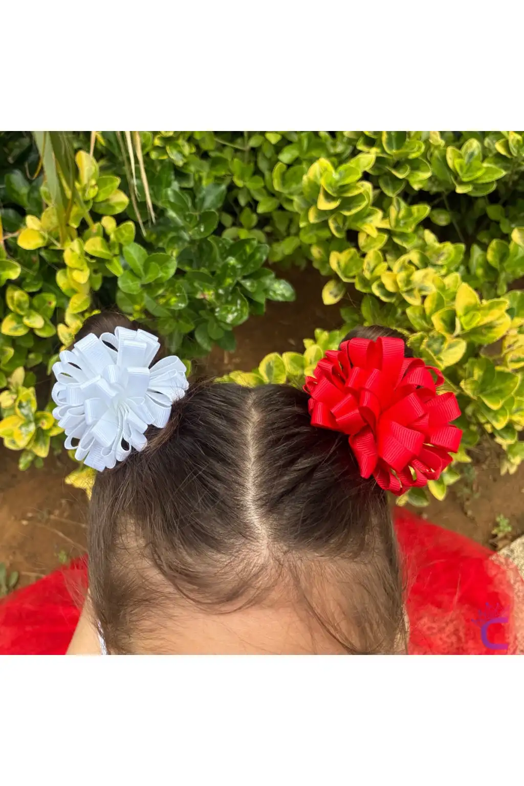 2'li Kırmızı Beyaz Kurdele Çiçekli 23 Nisan Lastikli Topuz Tokası 7cm - 29 Ekim Bayramı Saç Tokası