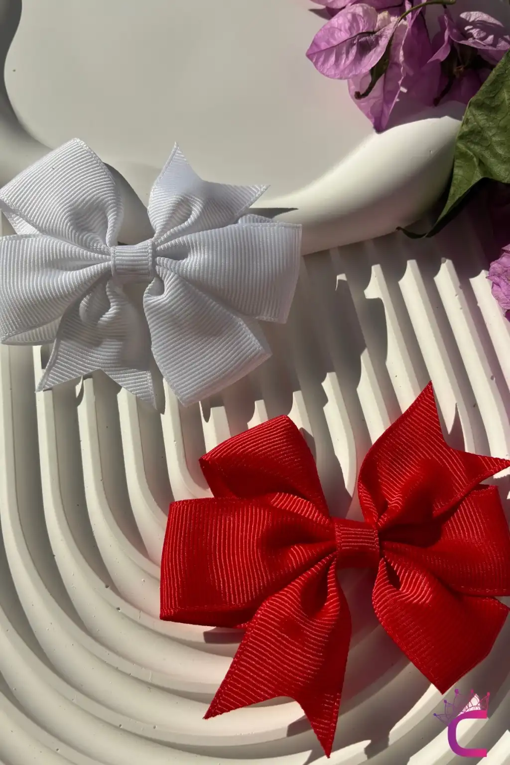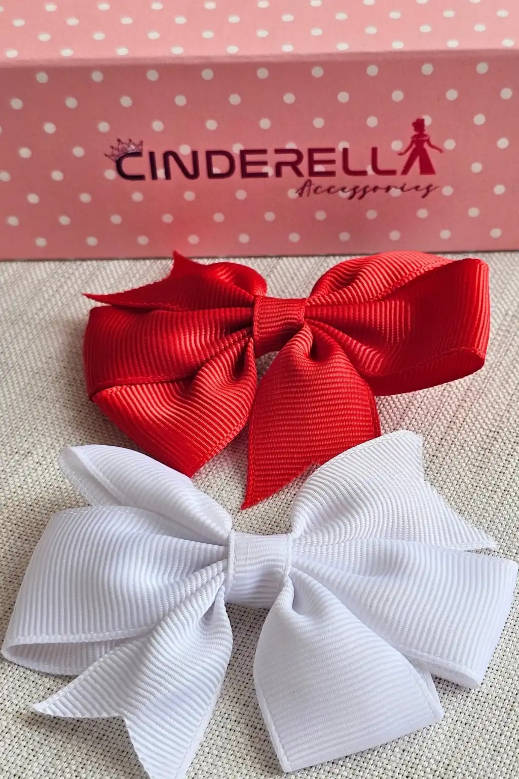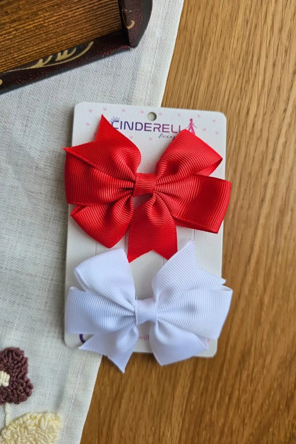 2'li Kırmızı Beyaz Kurdele Fiyonk Pens Çocuk Toka 8 cm - 23 Nisan 29 Ekim Cumhuriyet Bayramı Tokası