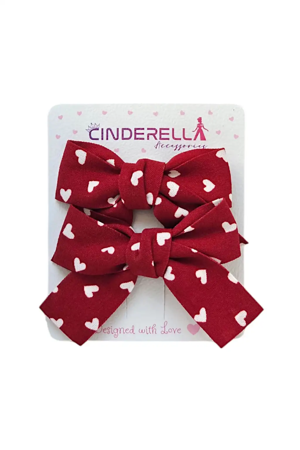 2'li Bordo Kırmızı Kurdele Fiyonk Pens Toka Seti 9cm- 23 Nisan 29 Ekim Cumhuriyet Bayramı Saç Tokası