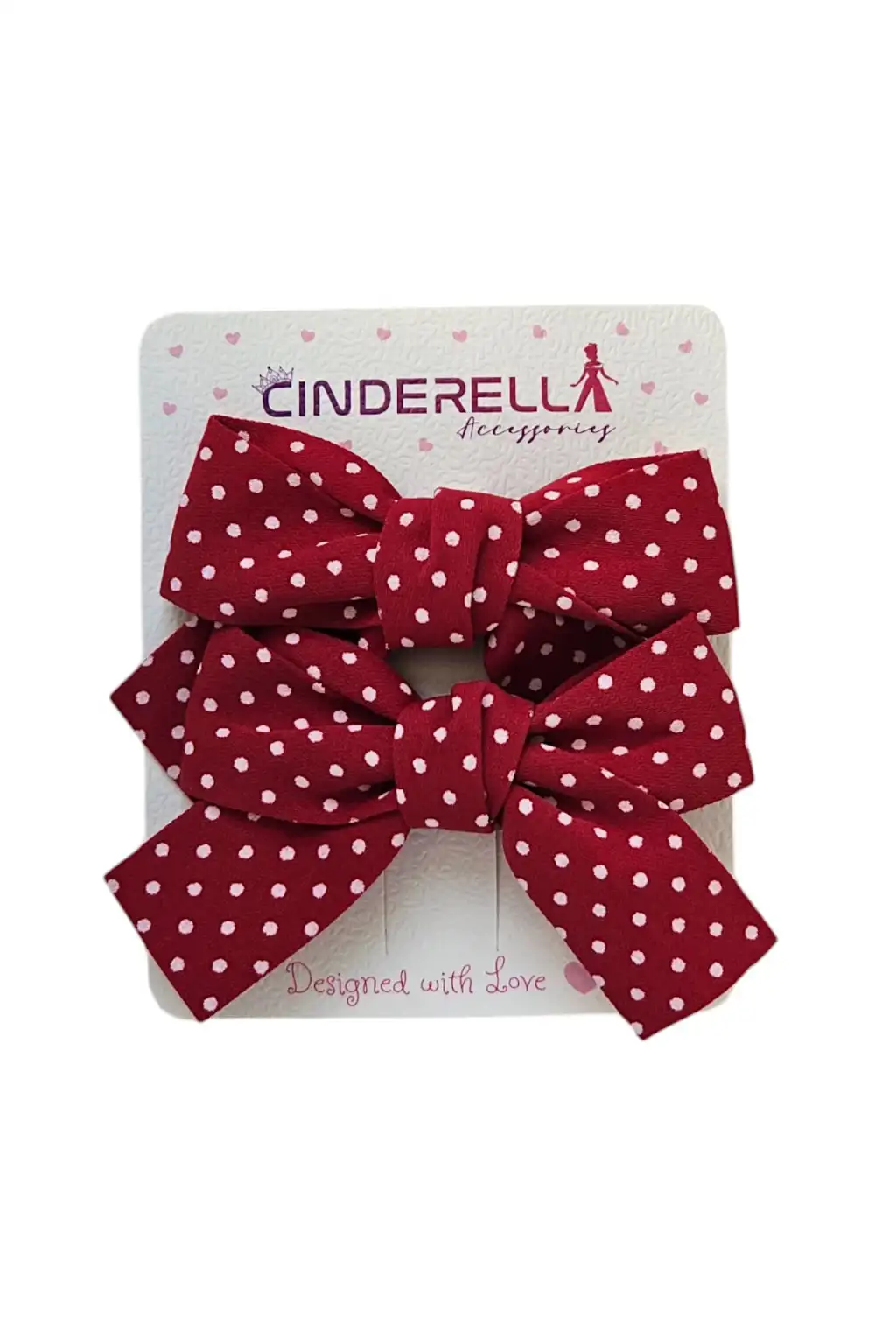 2'li Kız Çocuk Fiyonk Pens Toka Seti Kırmızı Tonlu - Kurdele Fiyonklu Klips Saç Tokası Model-5