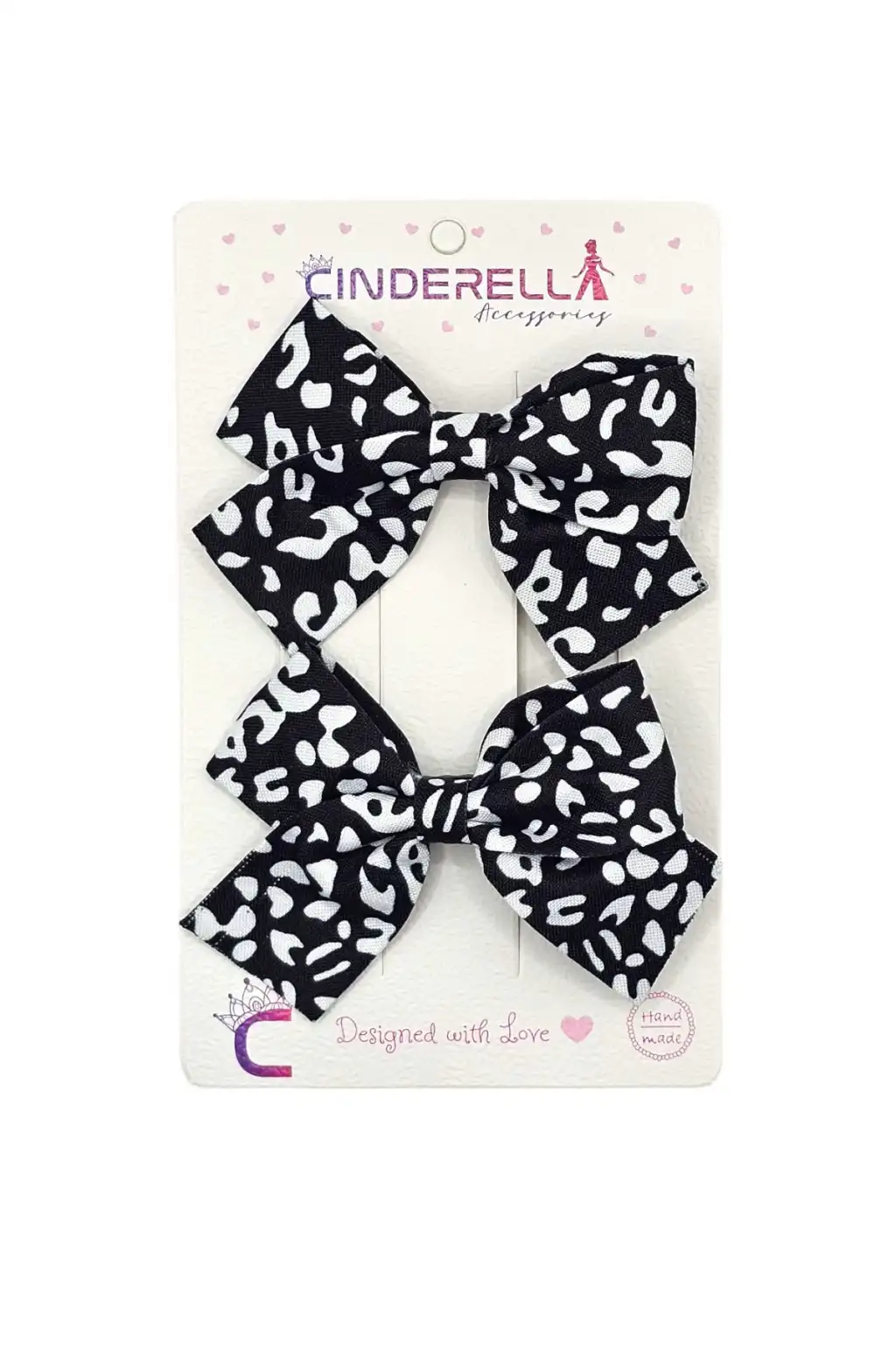 2'li Kız Çocuk Fiyonk Toka Seti Siyah Soft Renkli - Zarif Fiyonklu Kurdele Klips Pens Saç Tokası