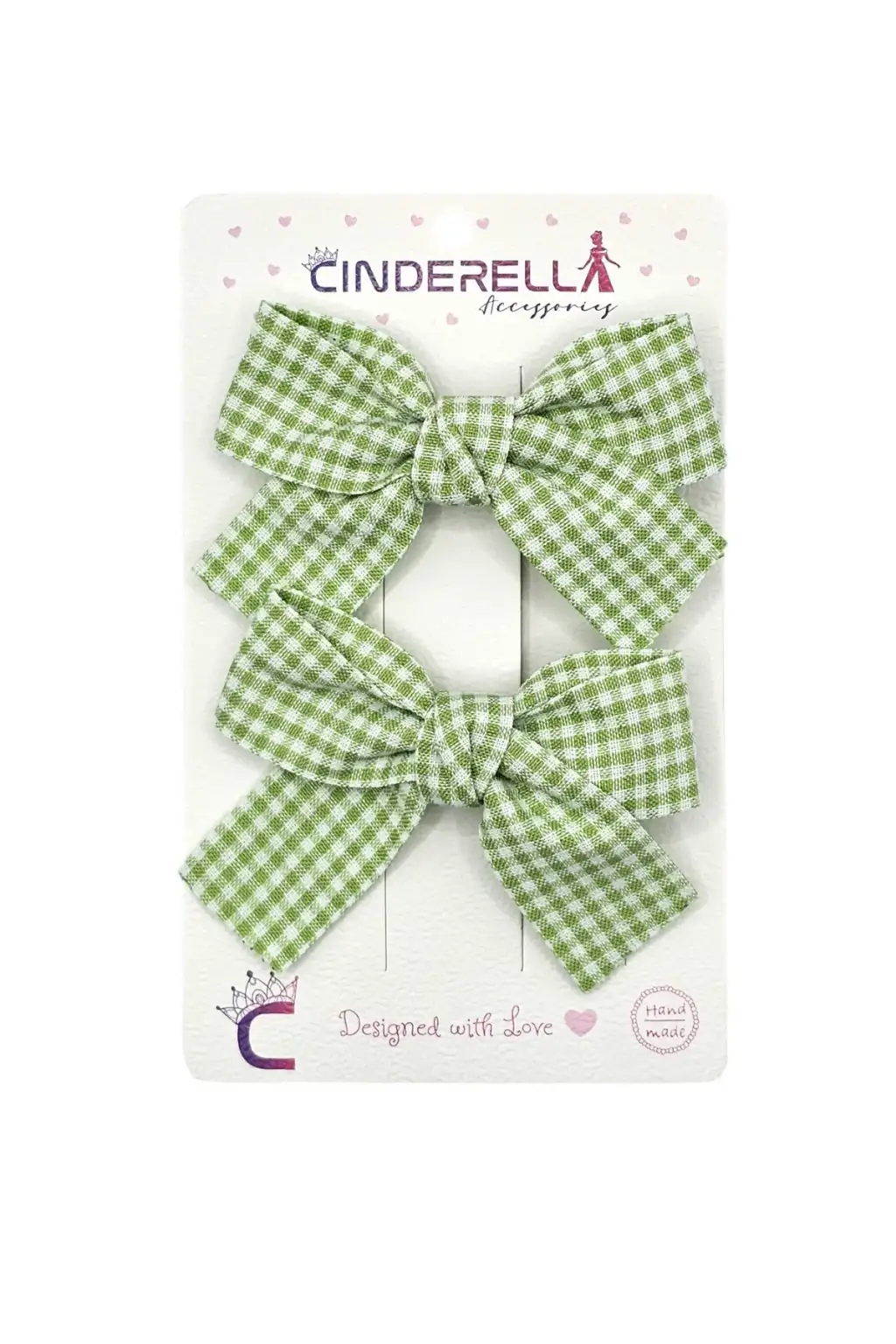 2'li Kız Çocuk Fiyonk Toka Seti Yeşil Tonlu - Renkli Fiyonklu Kurdele Klips Pens Bebek Saç Tokası
